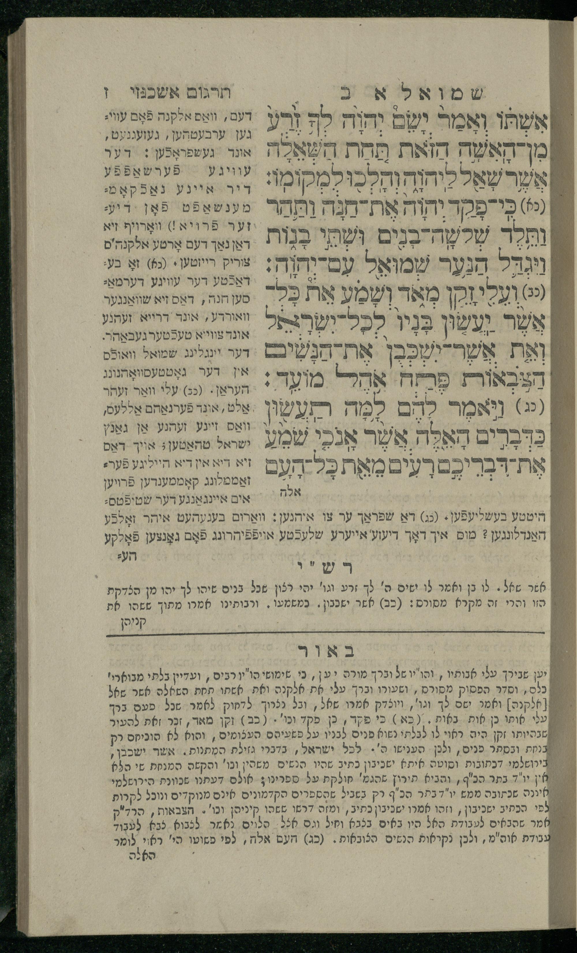 7 (1835) Sefer Shemuʾel / meturgam u-mevoʾar me-ḥadash, hugah be-viḳoret ʿain ha-medaḳdeḳ ha-ḥakham mo.h.r.R. Ṿolf Meʾir (moreh lashon ʿIvri be-vet ḥinukh ha-normali asher be-Prag) ṿe-nilṿah elaṿ Perush Rashi ṿe-haʿtaḳat u-veʾur kol milot be-laʿaz me-et ha-madpis Mosheh ha-Leṿi Landa7 (1835) ספר שמואל / מתורגם ומבואר מחדש, הוגה בבקרת עין המדקדק החכם מוהר''ר וואלף מאיר (מורה לשון עברי בבית חנוך הנארמאלי אשר בפראג) ונלוה אליו פירוש רש''י והעתקת ובאור כל מלות בלע''ז מאת המדפיס משה הלוי לנדא