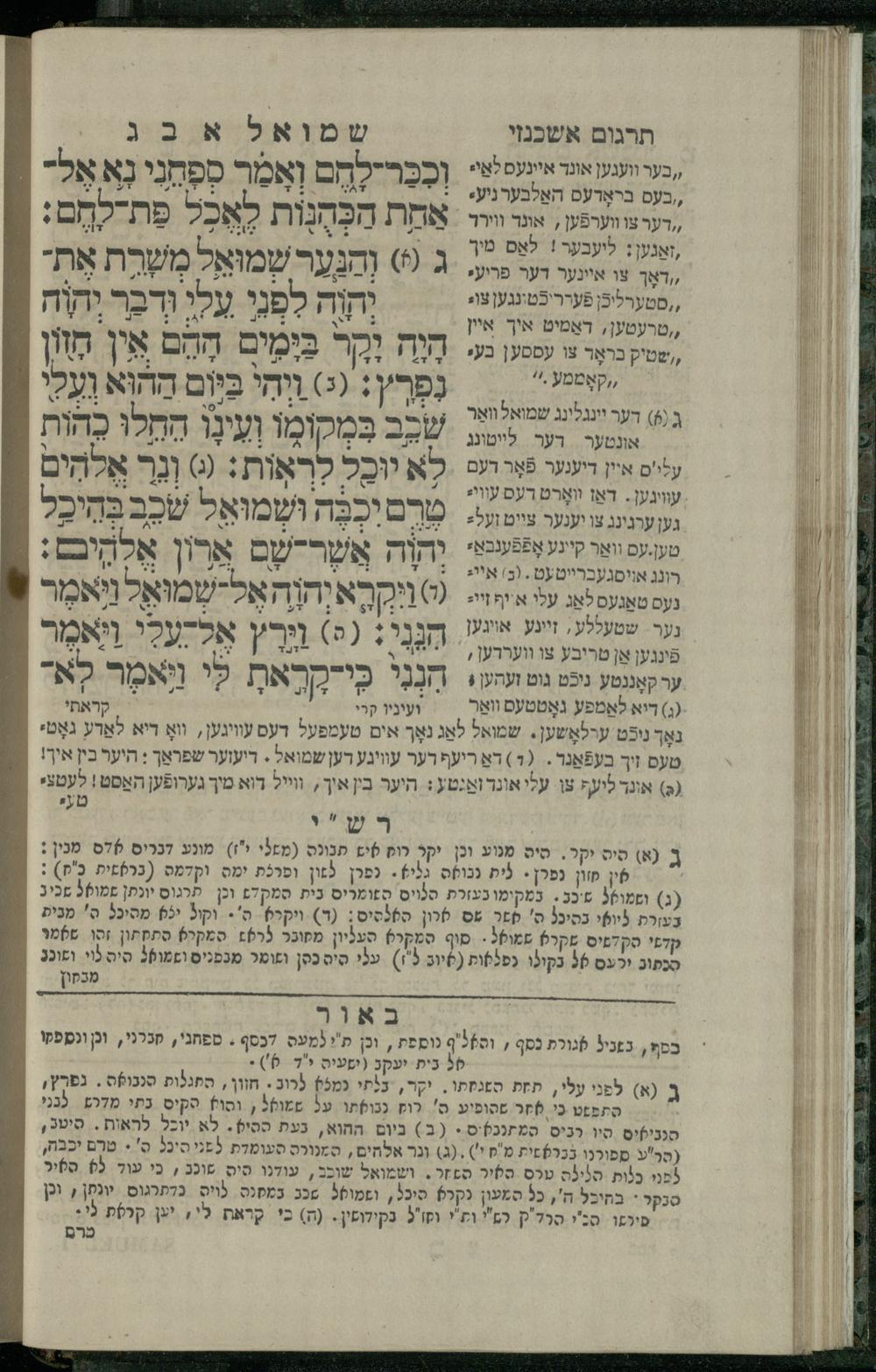 7 (1835) Sefer Shemuʾel / meturgam u-mevoʾar me-ḥadash, hugah be-viḳoret ʿain ha-medaḳdeḳ ha-ḥakham mo.h.r.R. Ṿolf Meʾir (moreh lashon ʿIvri be-vet ḥinukh ha-normali asher be-Prag) ṿe-nilṿah elaṿ Perush Rashi ṿe-haʿtaḳat u-veʾur kol milot be-laʿaz me-et ha-madpis Mosheh ha-Leṿi Landa7 (1835) ספר שמואל / מתורגם ומבואר מחדש, הוגה בבקרת עין המדקדק החכם מוהר''ר וואלף מאיר (מורה לשון עברי בבית חנוך הנארמאלי אשר בפראג) ונלוה אליו פירוש רש''י והעתקת ובאור כל מלות בלע''ז מאת המדפיס משה הלוי לנדא