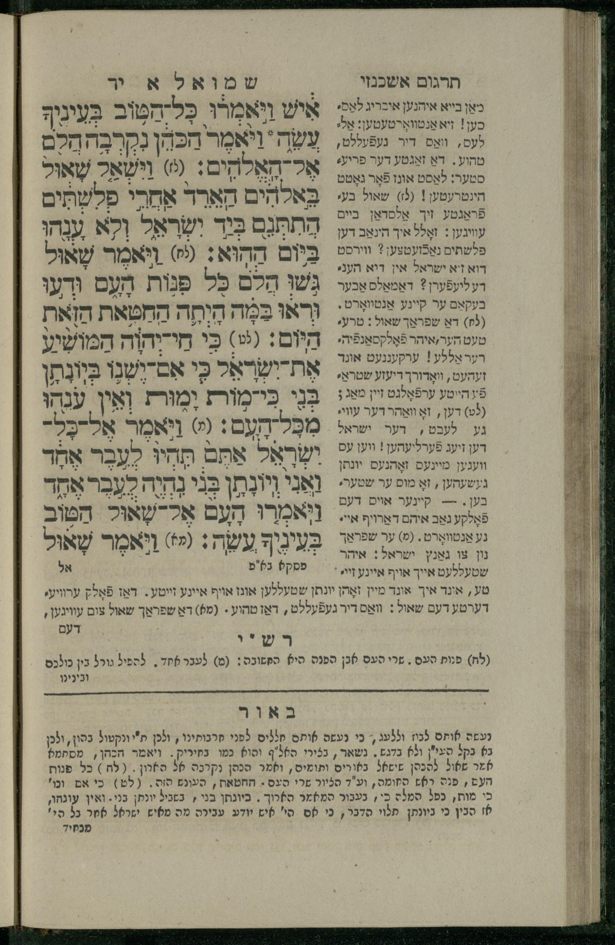 7 (1835) Sefer Shemuʾel / meturgam u-mevoʾar me-ḥadash, hugah be-viḳoret ʿain ha-medaḳdeḳ ha-ḥakham mo.h.r.R. Ṿolf Meʾir (moreh lashon ʿIvri be-vet ḥinukh ha-normali asher be-Prag) ṿe-nilṿah elaṿ Perush Rashi ṿe-haʿtaḳat u-veʾur kol milot be-laʿaz me-et ha-madpis Mosheh ha-Leṿi Landa7 (1835) ספר שמואל / מתורגם ומבואר מחדש, הוגה בבקרת עין המדקדק החכם מוהר''ר וואלף מאיר (מורה לשון עברי בבית חנוך הנארמאלי אשר בפראג) ונלוה אליו פירוש רש''י והעתקת ובאור כל מלות בלע''ז מאת המדפיס משה הלוי לנדא