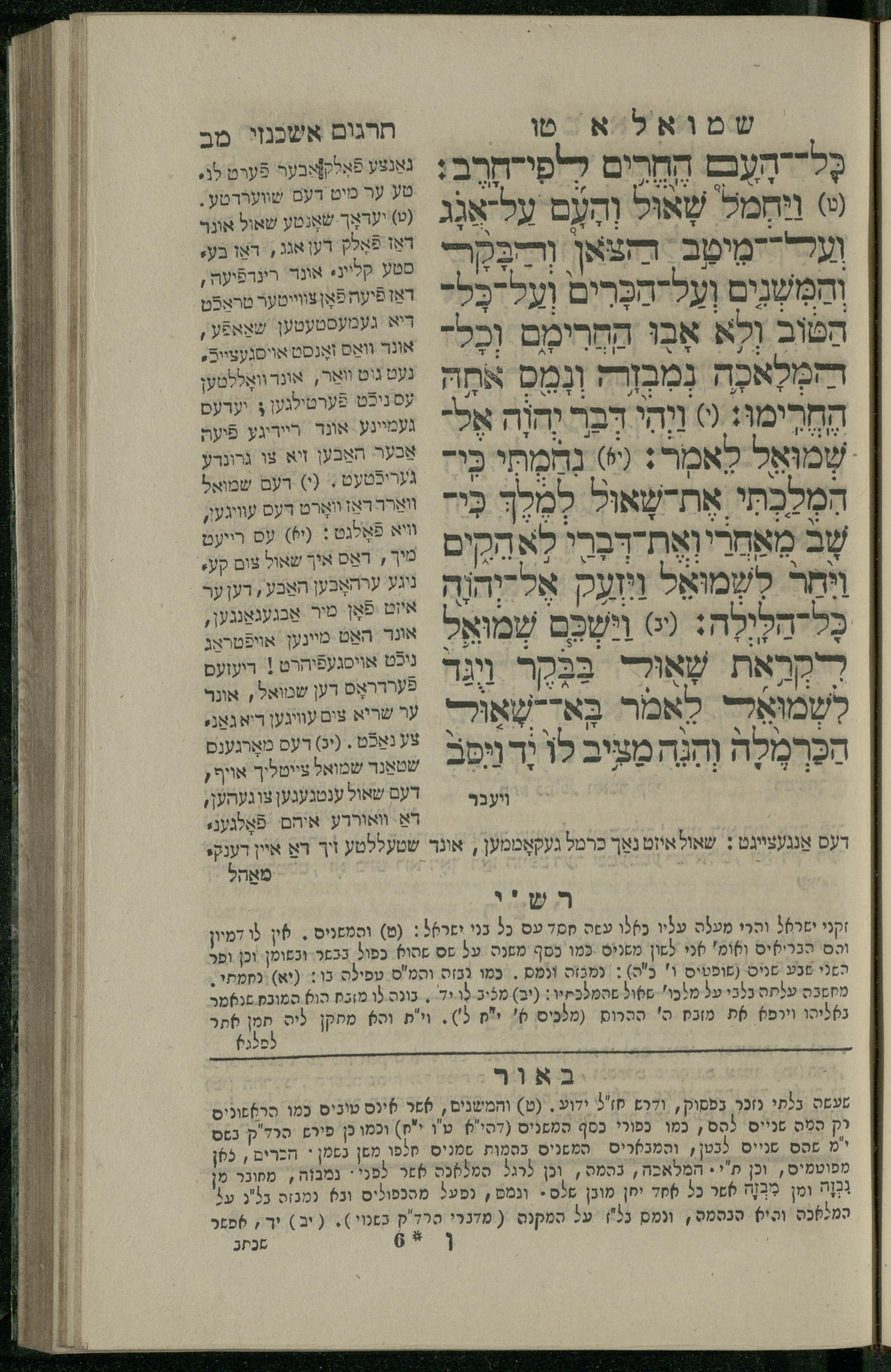 7 (1835) Sefer Shemuʾel / meturgam u-mevoʾar me-ḥadash, hugah be-viḳoret ʿain ha-medaḳdeḳ ha-ḥakham mo.h.r.R. Ṿolf Meʾir (moreh lashon ʿIvri be-vet ḥinukh ha-normali asher be-Prag) ṿe-nilṿah elaṿ Perush Rashi ṿe-haʿtaḳat u-veʾur kol milot be-laʿaz me-et ha-madpis Mosheh ha-Leṿi Landa7 (1835) ספר שמואל / מתורגם ומבואר מחדש, הוגה בבקרת עין המדקדק החכם מוהר''ר וואלף מאיר (מורה לשון עברי בבית חנוך הנארמאלי אשר בפראג) ונלוה אליו פירוש רש''י והעתקת ובאור כל מלות בלע''ז מאת המדפיס משה הלוי לנדא