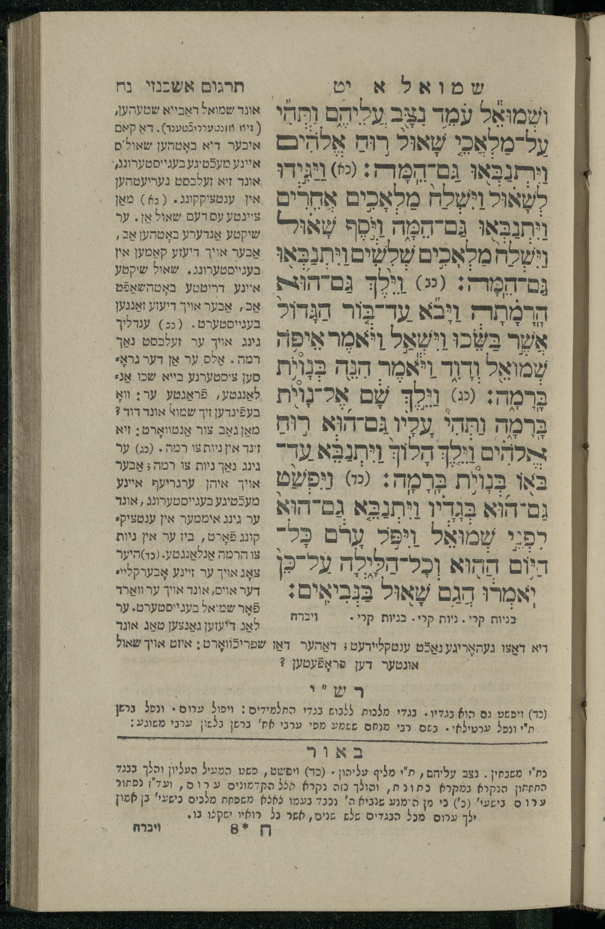 7 (1835) Sefer Shemuʾel / meturgam u-mevoʾar me-ḥadash, hugah be-viḳoret ʿain ha-medaḳdeḳ ha-ḥakham mo.h.r.R. Ṿolf Meʾir (moreh lashon ʿIvri be-vet ḥinukh ha-normali asher be-Prag) ṿe-nilṿah elaṿ Perush Rashi ṿe-haʿtaḳat u-veʾur kol milot be-laʿaz me-et ha-madpis Mosheh ha-Leṿi Landa7 (1835) ספר שמואל / מתורגם ומבואר מחדש, הוגה בבקרת עין המדקדק החכם מוהר''ר וואלף מאיר (מורה לשון עברי בבית חנוך הנארמאלי אשר בפראג) ונלוה אליו פירוש רש''י והעתקת ובאור כל מלות בלע''ז מאת המדפיס משה הלוי לנדא