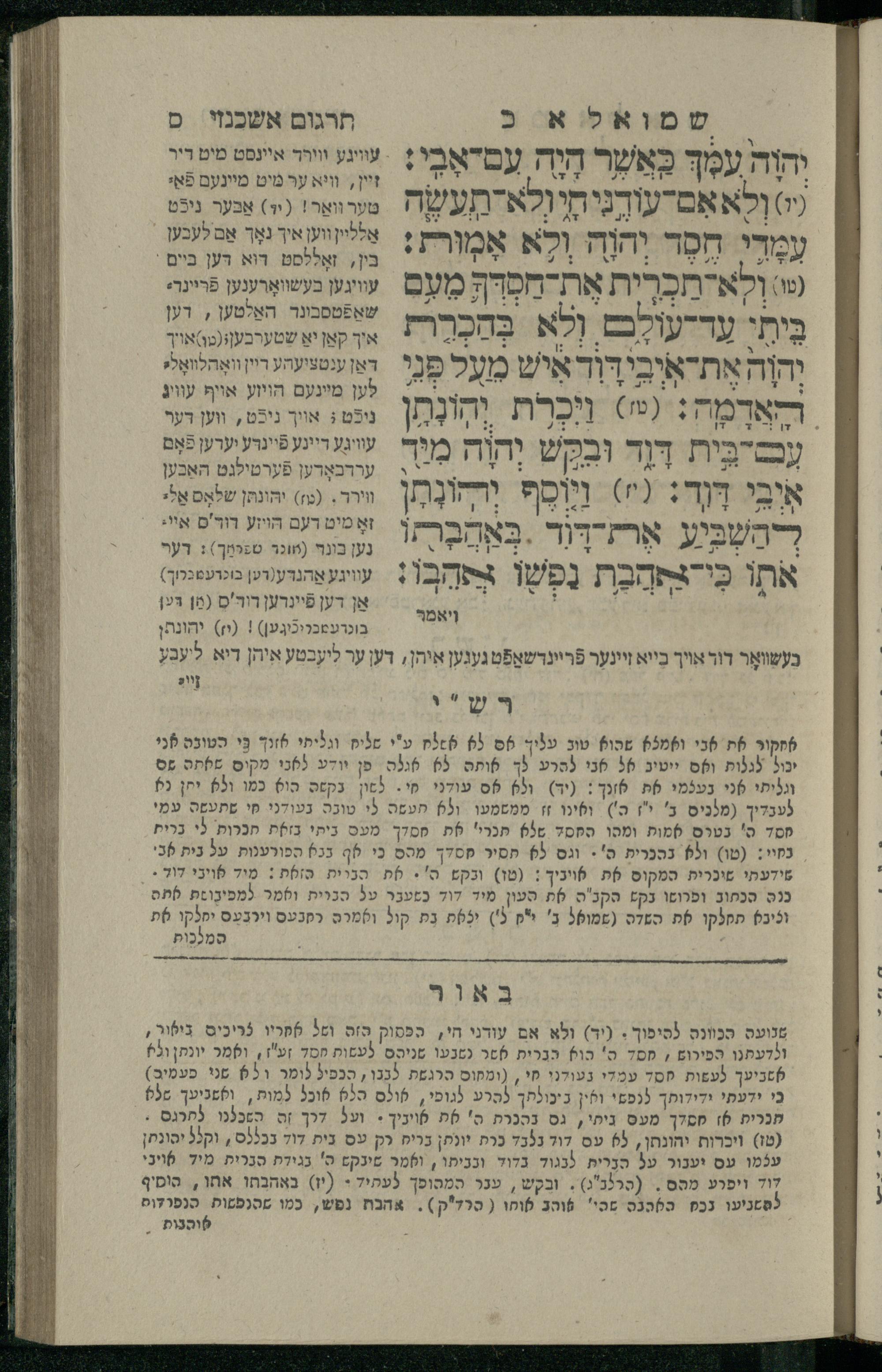 7 (1835) Sefer Shemuʾel / meturgam u-mevoʾar me-ḥadash, hugah be-viḳoret ʿain ha-medaḳdeḳ ha-ḥakham mo.h.r.R. Ṿolf Meʾir (moreh lashon ʿIvri be-vet ḥinukh ha-normali asher be-Prag) ṿe-nilṿah elaṿ Perush Rashi ṿe-haʿtaḳat u-veʾur kol milot be-laʿaz me-et ha-madpis Mosheh ha-Leṿi Landa7 (1835) ספר שמואל / מתורגם ומבואר מחדש, הוגה בבקרת עין המדקדק החכם מוהר''ר וואלף מאיר (מורה לשון עברי בבית חנוך הנארמאלי אשר בפראג) ונלוה אליו פירוש רש''י והעתקת ובאור כל מלות בלע''ז מאת המדפיס משה הלוי לנדא