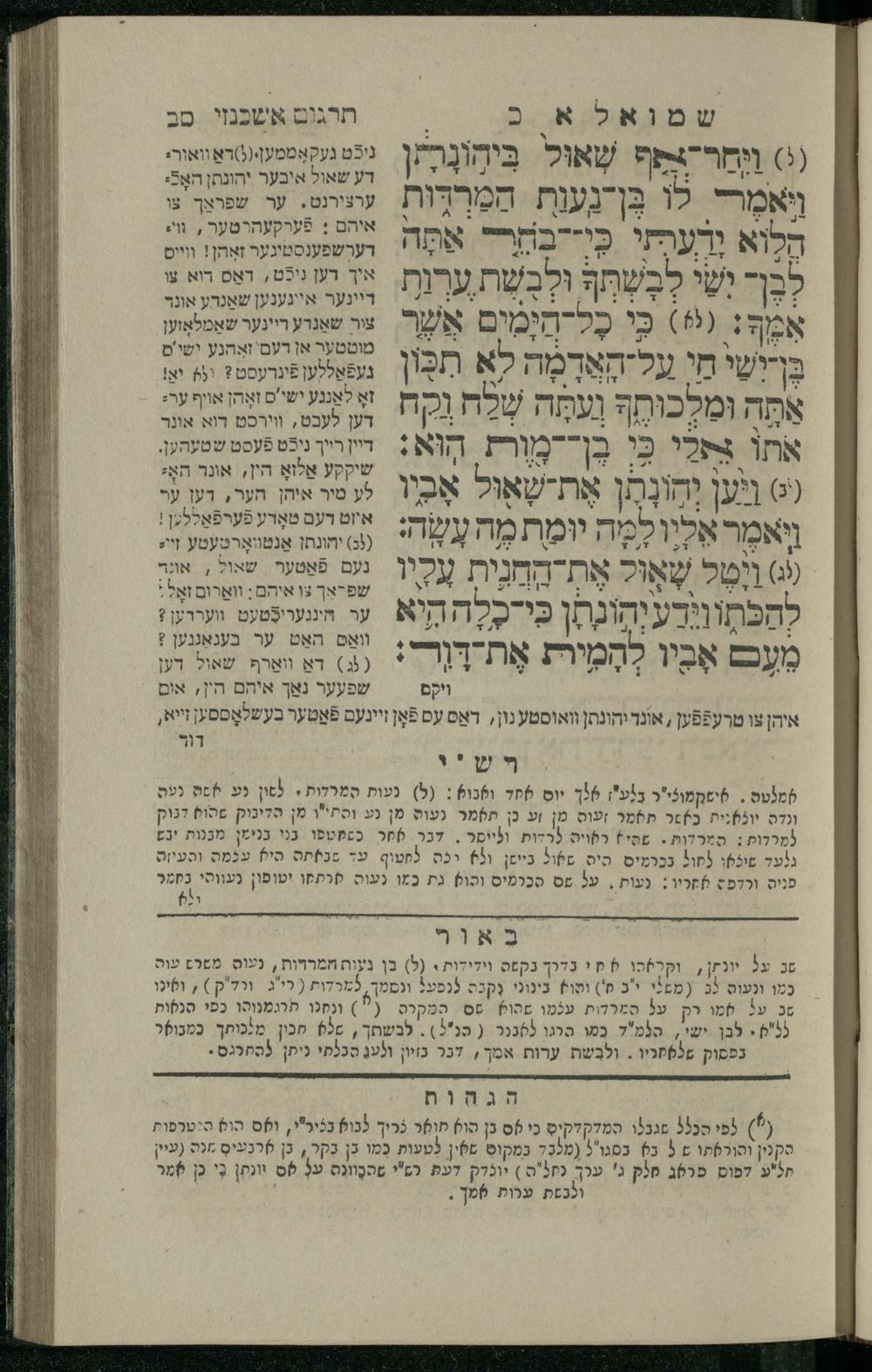 7 (1835) Sefer Shemuʾel / meturgam u-mevoʾar me-ḥadash, hugah be-viḳoret ʿain ha-medaḳdeḳ ha-ḥakham mo.h.r.R. Ṿolf Meʾir (moreh lashon ʿIvri be-vet ḥinukh ha-normali asher be-Prag) ṿe-nilṿah elaṿ Perush Rashi ṿe-haʿtaḳat u-veʾur kol milot be-laʿaz me-et ha-madpis Mosheh ha-Leṿi Landa7 (1835) ספר שמואל / מתורגם ומבואר מחדש, הוגה בבקרת עין המדקדק החכם מוהר''ר וואלף מאיר (מורה לשון עברי בבית חנוך הנארמאלי אשר בפראג) ונלוה אליו פירוש רש''י והעתקת ובאור כל מלות בלע''ז מאת המדפיס משה הלוי לנדא