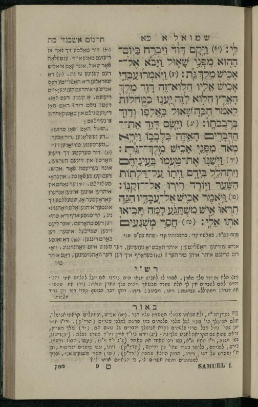 7 (1835) Sefer Shemuʾel / meturgam u-mevoʾar me-ḥadash, hugah be-viḳoret ʿain ha-medaḳdeḳ ha-ḥakham mo.h.r.R. Ṿolf Meʾir (moreh lashon ʿIvri be-vet ḥinukh ha-normali asher be-Prag) ṿe-nilṿah elaṿ Perush Rashi ṿe-haʿtaḳat u-veʾur kol milot be-laʿaz me-et ha-madpis Mosheh ha-Leṿi Landa7 (1835) ספר שמואל / מתורגם ומבואר מחדש, הוגה בבקרת עין המדקדק החכם מוהר''ר וואלף מאיר (מורה לשון עברי בבית חנוך הנארמאלי אשר בפראג) ונלוה אליו פירוש רש''י והעתקת ובאור כל מלות בלע''ז מאת המדפיס משה הלוי לנדא