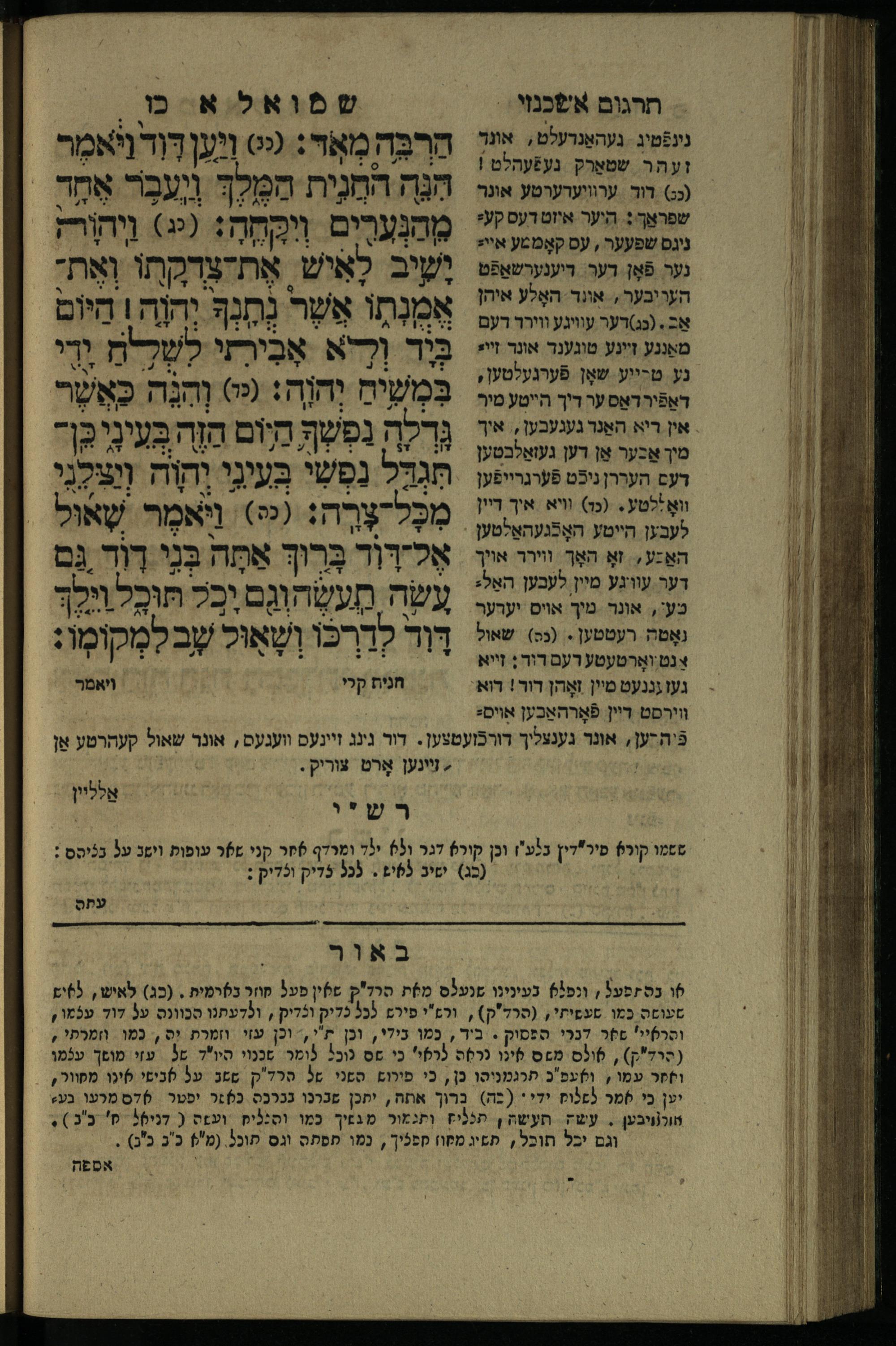 7 (1835) Sefer Shemuʾel / meturgam u-mevoʾar me-ḥadash, hugah be-viḳoret ʿain ha-medaḳdeḳ ha-ḥakham mo.h.r.R. Ṿolf Meʾir (moreh lashon ʿIvri be-vet ḥinukh ha-normali asher be-Prag) ṿe-nilṿah elaṿ Perush Rashi ṿe-haʿtaḳat u-veʾur kol milot be-laʿaz me-et ha-madpis Mosheh ha-Leṿi Landa7 (1835) ספר שמואל / מתורגם ומבואר מחדש, הוגה בבקרת עין המדקדק החכם מוהר''ר וואלף מאיר (מורה לשון עברי בבית חנוך הנארמאלי אשר בפראג) ונלוה אליו פירוש רש''י והעתקת ובאור כל מלות בלע''ז מאת המדפיס משה הלוי לנדא