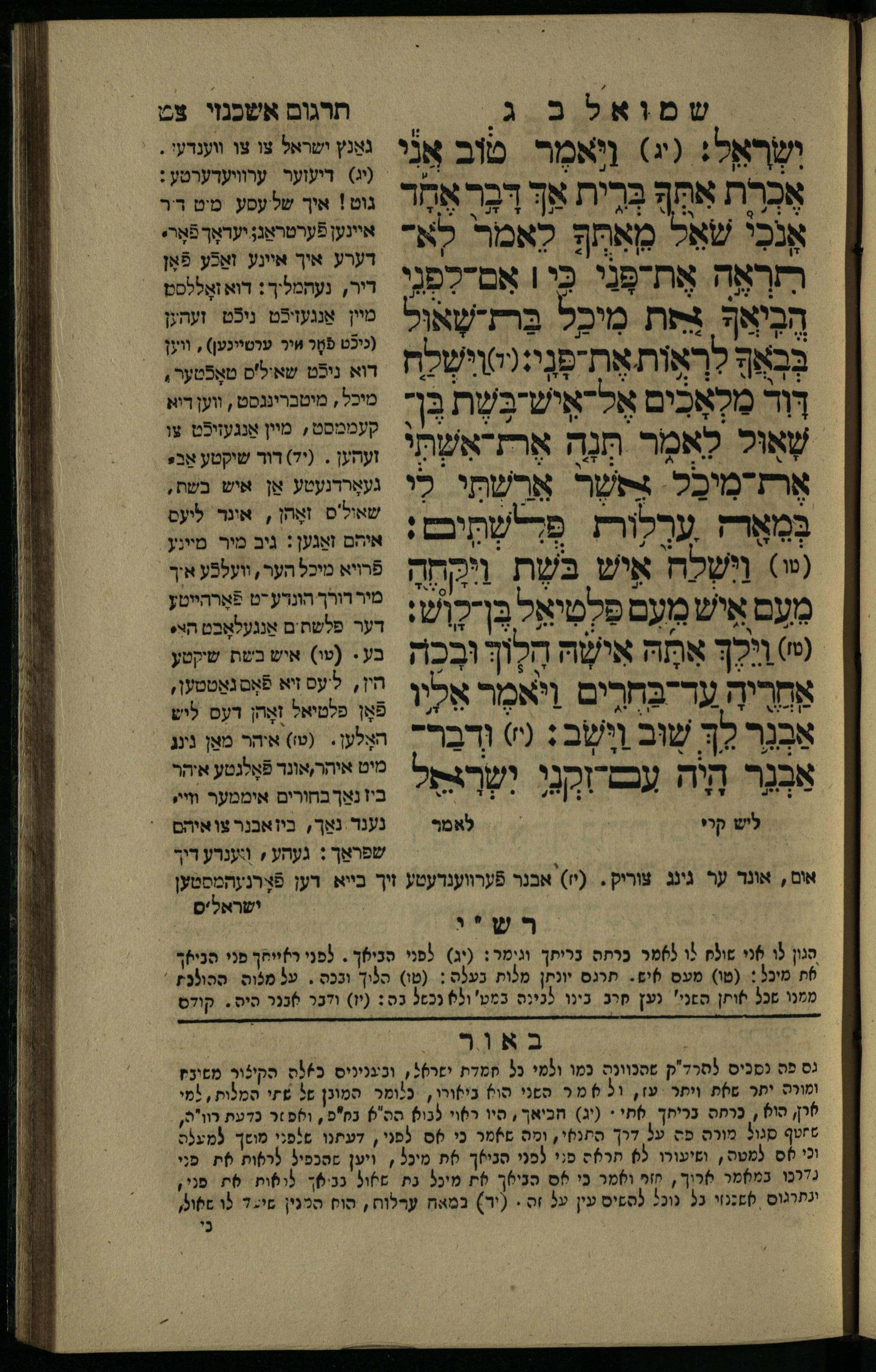 7 (1835) Sefer Shemuʾel / meturgam u-mevoʾar me-ḥadash, hugah be-viḳoret ʿain ha-medaḳdeḳ ha-ḥakham mo.h.r.R. Ṿolf Meʾir (moreh lashon ʿIvri be-vet ḥinukh ha-normali asher be-Prag) ṿe-nilṿah elaṿ Perush Rashi ṿe-haʿtaḳat u-veʾur kol milot be-laʿaz me-et ha-madpis Mosheh ha-Leṿi Landa7 (1835) ספר שמואל / מתורגם ומבואר מחדש, הוגה בבקרת עין המדקדק החכם מוהר''ר וואלף מאיר (מורה לשון עברי בבית חנוך הנארמאלי אשר בפראג) ונלוה אליו פירוש רש''י והעתקת ובאור כל מלות בלע''ז מאת המדפיס משה הלוי לנדא