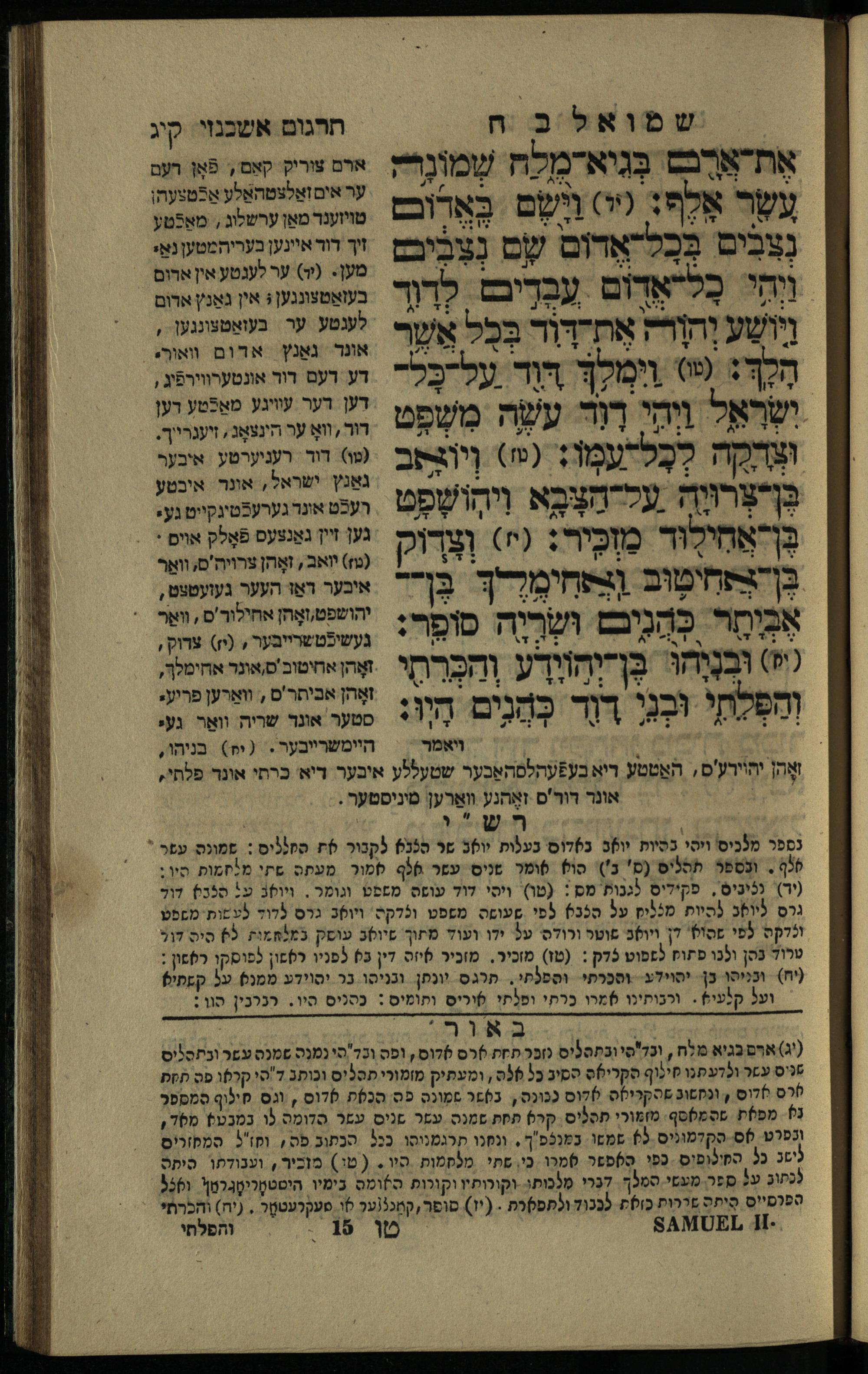 7 (1835) Sefer Shemuʾel / meturgam u-mevoʾar me-ḥadash, hugah be-viḳoret ʿain ha-medaḳdeḳ ha-ḥakham mo.h.r.R. Ṿolf Meʾir (moreh lashon ʿIvri be-vet ḥinukh ha-normali asher be-Prag) ṿe-nilṿah elaṿ Perush Rashi ṿe-haʿtaḳat u-veʾur kol milot be-laʿaz me-et ha-madpis Mosheh ha-Leṿi Landa7 (1835) ספר שמואל / מתורגם ומבואר מחדש, הוגה בבקרת עין המדקדק החכם מוהר''ר וואלף מאיר (מורה לשון עברי בבית חנוך הנארמאלי אשר בפראג) ונלוה אליו פירוש רש''י והעתקת ובאור כל מלות בלע''ז מאת המדפיס משה הלוי לנדא