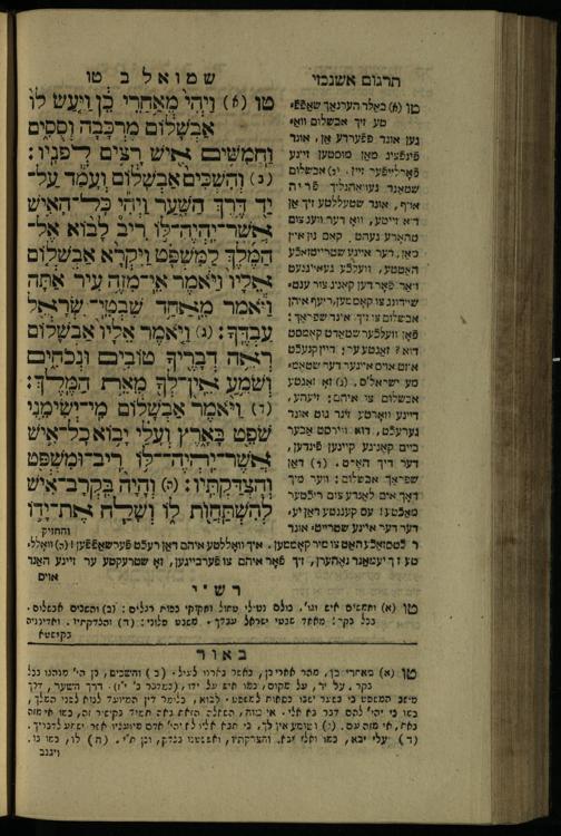 7 (1835) Sefer Shemuʾel / meturgam u-mevoʾar me-ḥadash, hugah be-viḳoret ʿain ha-medaḳdeḳ ha-ḥakham mo.h.r.R. Ṿolf Meʾir (moreh lashon ʿIvri be-vet ḥinukh ha-normali asher be-Prag) ṿe-nilṿah elaṿ Perush Rashi ṿe-haʿtaḳat u-veʾur kol milot be-laʿaz me-et ha-madpis Mosheh ha-Leṿi Landa7 (1835) ספר שמואל / מתורגם ומבואר מחדש, הוגה בבקרת עין המדקדק החכם מוהר''ר וואלף מאיר (מורה לשון עברי בבית חנוך הנארמאלי אשר בפראג) ונלוה אליו פירוש רש''י והעתקת ובאור כל מלות בלע''ז מאת המדפיס משה הלוי לנדא