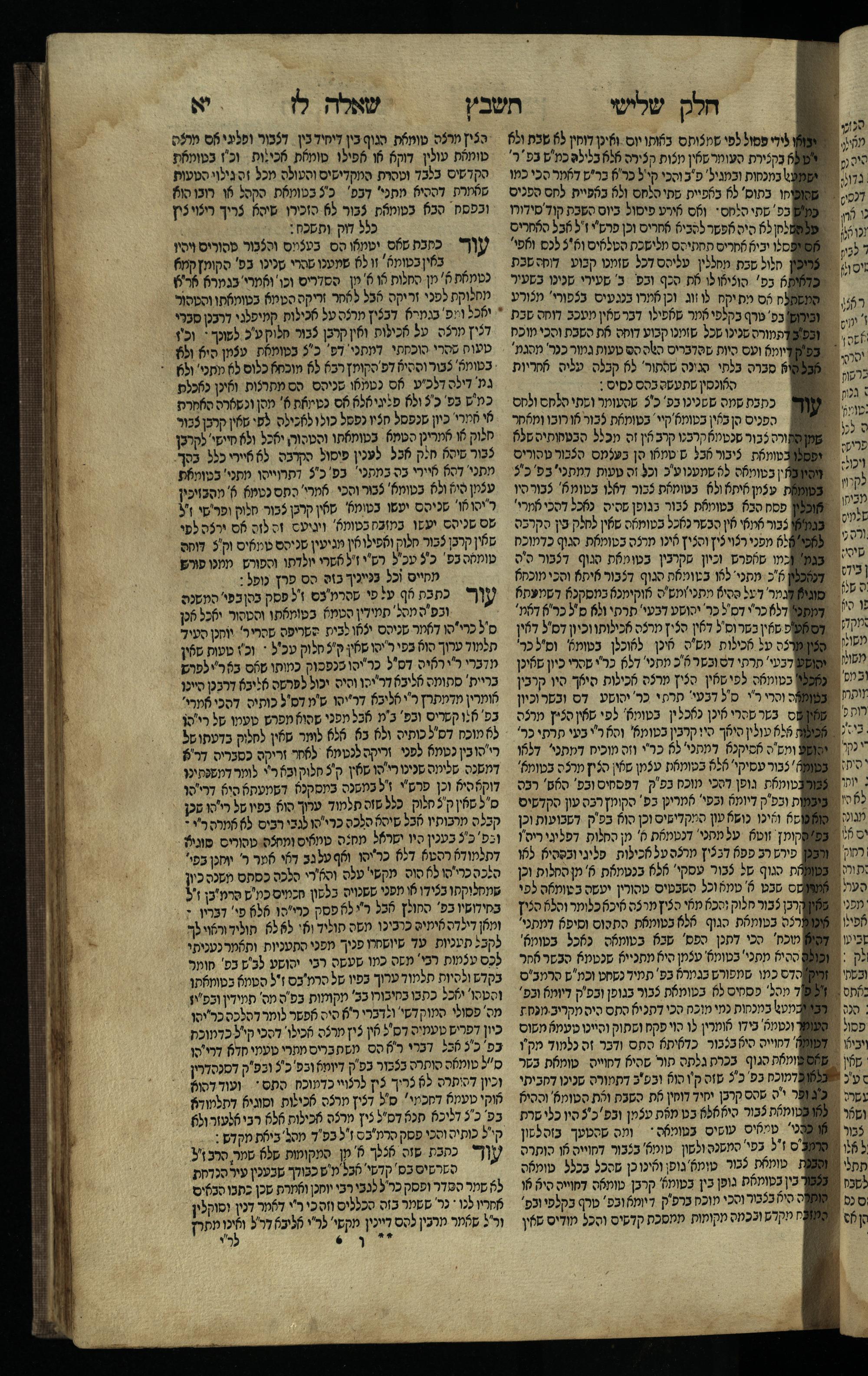 Ḥeleḳ reviʿi, ha-Ṭur ha-shelishi (1738) Ḥuṭ ha-meshulash / she-ḥiber ... Avraham ibn Ṭaṿah ... gam elu teshuvoto she-ḥiber be-koaḥ ḥokhmato ... gam hem ... ganuzim u-nishmarim ʿad ha-yom she-naʿaśu ḥeleḳ reviʿi le-sefer ha-Tashbets ... ṿe-ha-yom ha-zeh nitgalgel ha-zekhut ʿal yede ... Meʾir Ḳreśḳaś ... ben ... Netanʾel ...Ḥeleḳ reviʿi, ha-Ṭur ha-shelishi (1738) חוט המשולש / שחבר ... אברהם אבן טוואה ... גם אלו תשובותו שחבר בכח חכמתו ... גם הם ... גנוזים ונשמרים עד היום שנעשו חלק רביעי לספר התשבץ ...והיום הזה נתגלגל הזכות על ידי ... מאיר קרשקש ... בן ... נתנאל ...