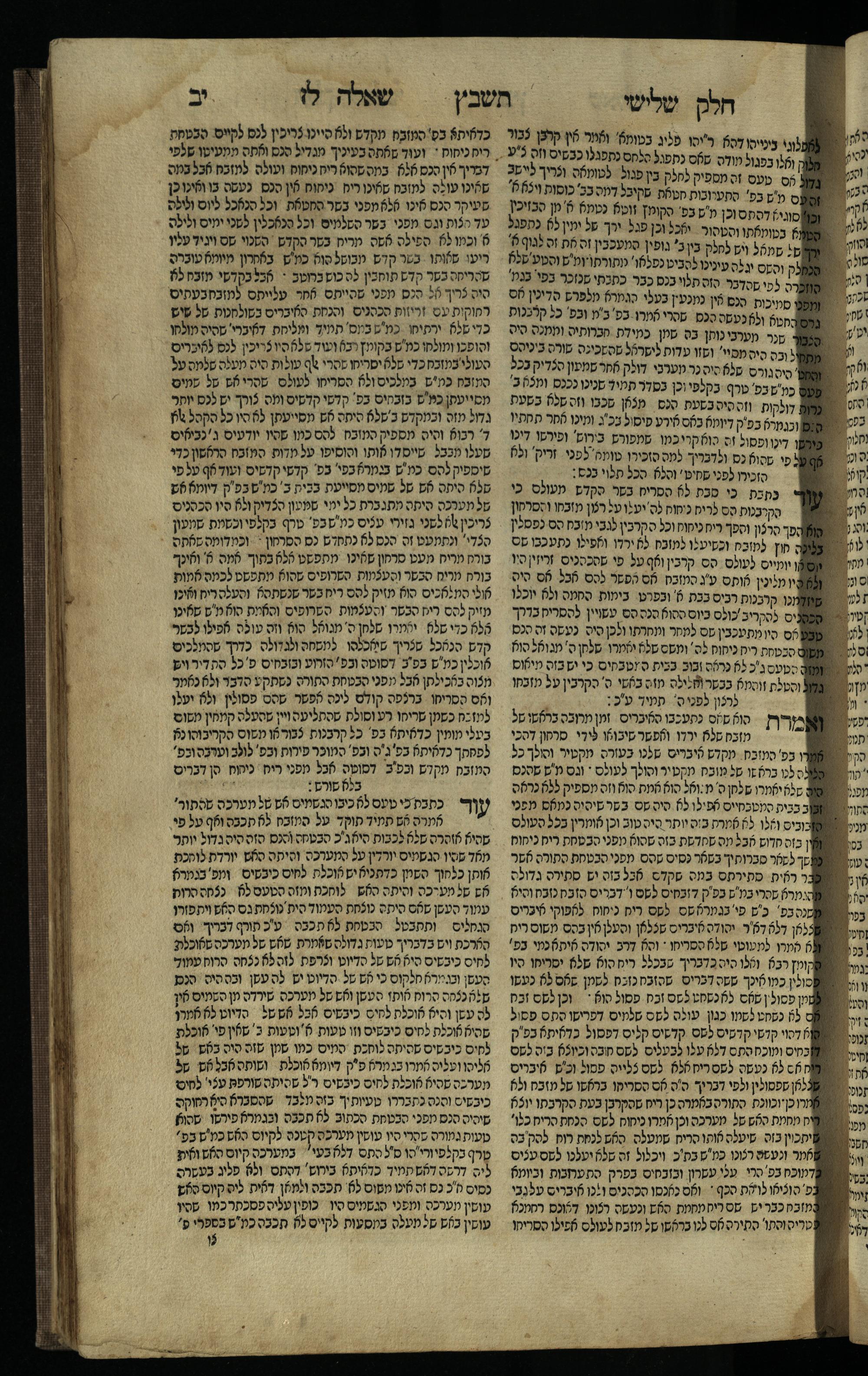 Ḥeleḳ reviʿi, ha-Ṭur ha-shelishi (1738) Ḥuṭ ha-meshulash / she-ḥiber ... Avraham ibn Ṭaṿah ... gam elu teshuvoto she-ḥiber be-koaḥ ḥokhmato ... gam hem ... ganuzim u-nishmarim ʿad ha-yom she-naʿaśu ḥeleḳ reviʿi le-sefer ha-Tashbets ... ṿe-ha-yom ha-zeh nitgalgel ha-zekhut ʿal yede ... Meʾir Ḳreśḳaś ... ben ... Netanʾel ...Ḥeleḳ reviʿi, ha-Ṭur ha-shelishi (1738) חוט המשולש / שחבר ... אברהם אבן טוואה ... גם אלו תשובותו שחבר בכח חכמתו ... גם הם ... גנוזים ונשמרים עד היום שנעשו חלק רביעי לספר התשבץ ...והיום הזה נתגלגל הזכות על ידי ... מאיר קרשקש ... בן ... נתנאל ...