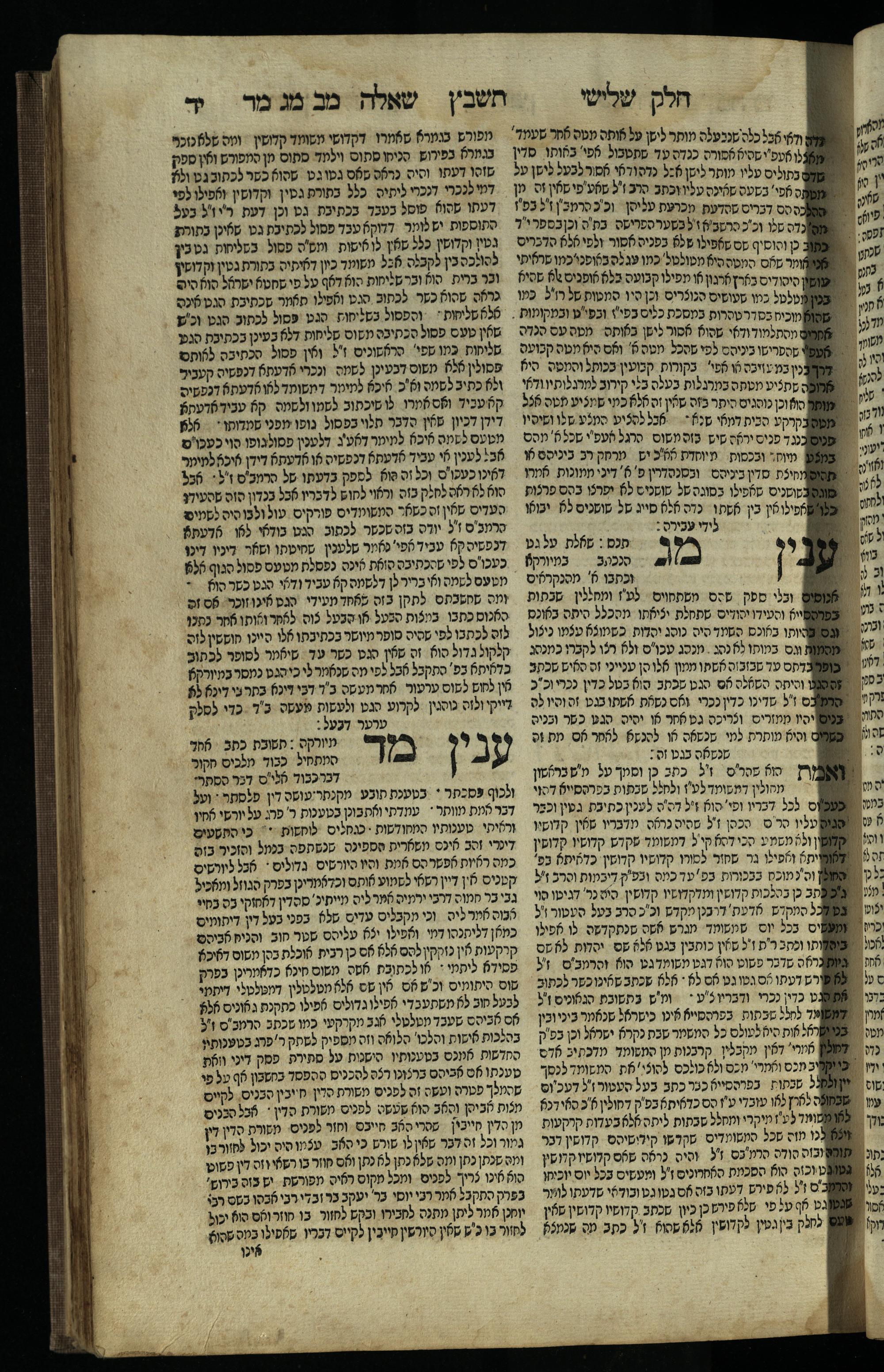 Ḥeleḳ reviʿi, ha-Ṭur ha-shelishi (1738) Ḥuṭ ha-meshulash / she-ḥiber ... Avraham ibn Ṭaṿah ... gam elu teshuvoto she-ḥiber be-koaḥ ḥokhmato ... gam hem ... ganuzim u-nishmarim ʿad ha-yom she-naʿaśu ḥeleḳ reviʿi le-sefer ha-Tashbets ... ṿe-ha-yom ha-zeh nitgalgel ha-zekhut ʿal yede ... Meʾir Ḳreśḳaś ... ben ... Netanʾel ...Ḥeleḳ reviʿi, ha-Ṭur ha-shelishi (1738) חוט המשולש / שחבר ... אברהם אבן טוואה ... גם אלו תשובותו שחבר בכח חכמתו ... גם הם ... גנוזים ונשמרים עד היום שנעשו חלק רביעי לספר התשבץ ...והיום הזה נתגלגל הזכות על ידי ... מאיר קרשקש ... בן ... נתנאל ...