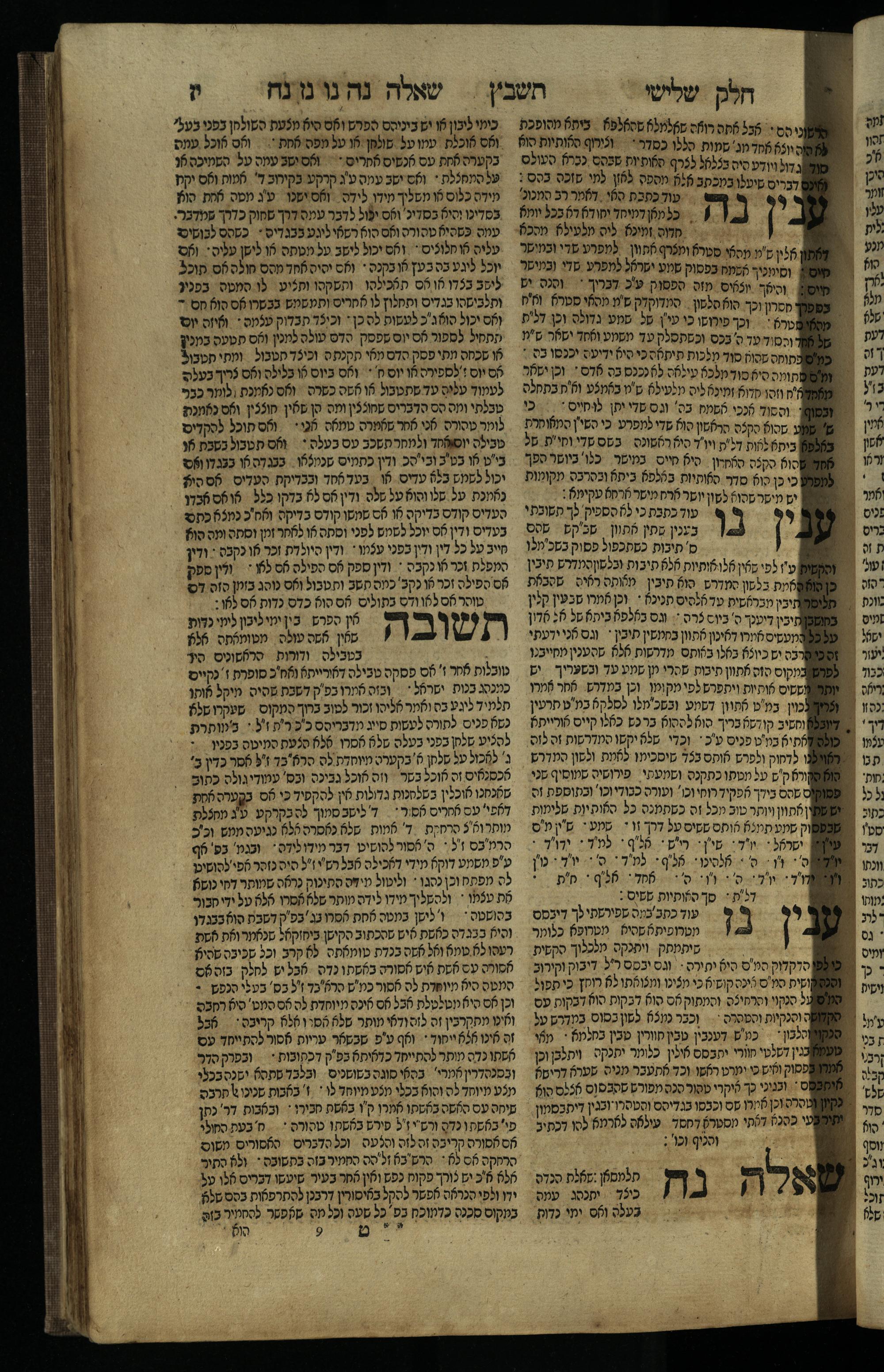 Ḥeleḳ reviʿi, ha-Ṭur ha-shelishi (1738) Ḥuṭ ha-meshulash / she-ḥiber ... Avraham ibn Ṭaṿah ... gam elu teshuvoto she-ḥiber be-koaḥ ḥokhmato ... gam hem ... ganuzim u-nishmarim ʿad ha-yom she-naʿaśu ḥeleḳ reviʿi le-sefer ha-Tashbets ... ṿe-ha-yom ha-zeh nitgalgel ha-zekhut ʿal yede ... Meʾir Ḳreśḳaś ... ben ... Netanʾel ...Ḥeleḳ reviʿi, ha-Ṭur ha-shelishi (1738) חוט המשולש / שחבר ... אברהם אבן טוואה ... גם אלו תשובותו שחבר בכח חכמתו ... גם הם ... גנוזים ונשמרים עד היום שנעשו חלק רביעי לספר התשבץ ...והיום הזה נתגלגל הזכות על ידי ... מאיר קרשקש ... בן ... נתנאל ...
