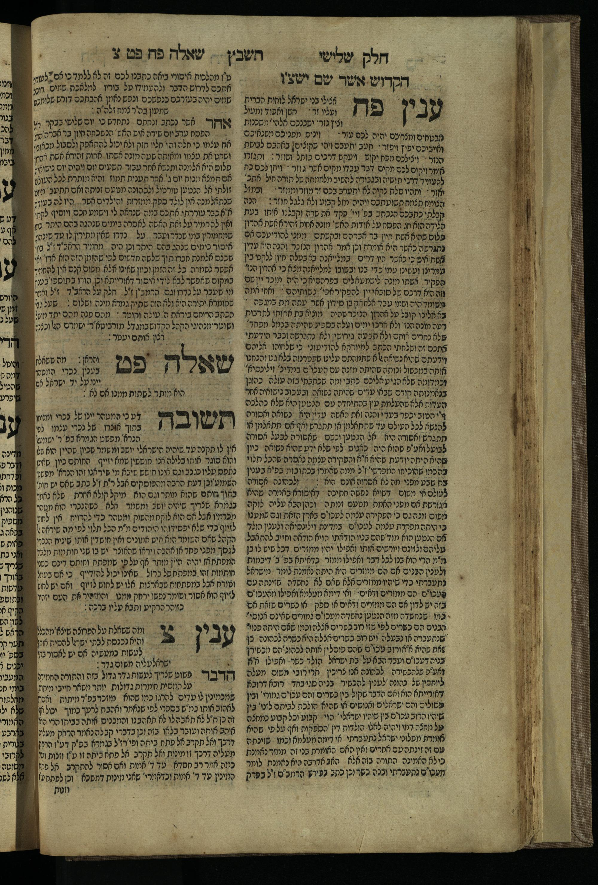 Ḥeleḳ reviʿi, ha-Ṭur ha-shelishi (1738) Ḥuṭ ha-meshulash / she-ḥiber ... Avraham ibn Ṭaṿah ... gam elu teshuvoto she-ḥiber be-koaḥ ḥokhmato ... gam hem ... ganuzim u-nishmarim ʿad ha-yom she-naʿaśu ḥeleḳ reviʿi le-sefer ha-Tashbets ... ṿe-ha-yom ha-zeh nitgalgel ha-zekhut ʿal yede ... Meʾir Ḳreśḳaś ... ben ... Netanʾel ...Ḥeleḳ reviʿi, ha-Ṭur ha-shelishi (1738) חוט המשולש / שחבר ... אברהם אבן טוואה ... גם אלו תשובותו שחבר בכח חכמתו ... גם הם ... גנוזים ונשמרים עד היום שנעשו חלק רביעי לספר התשבץ ...והיום הזה נתגלגל הזכות על ידי ... מאיר קרשקש ... בן ... נתנאל ...