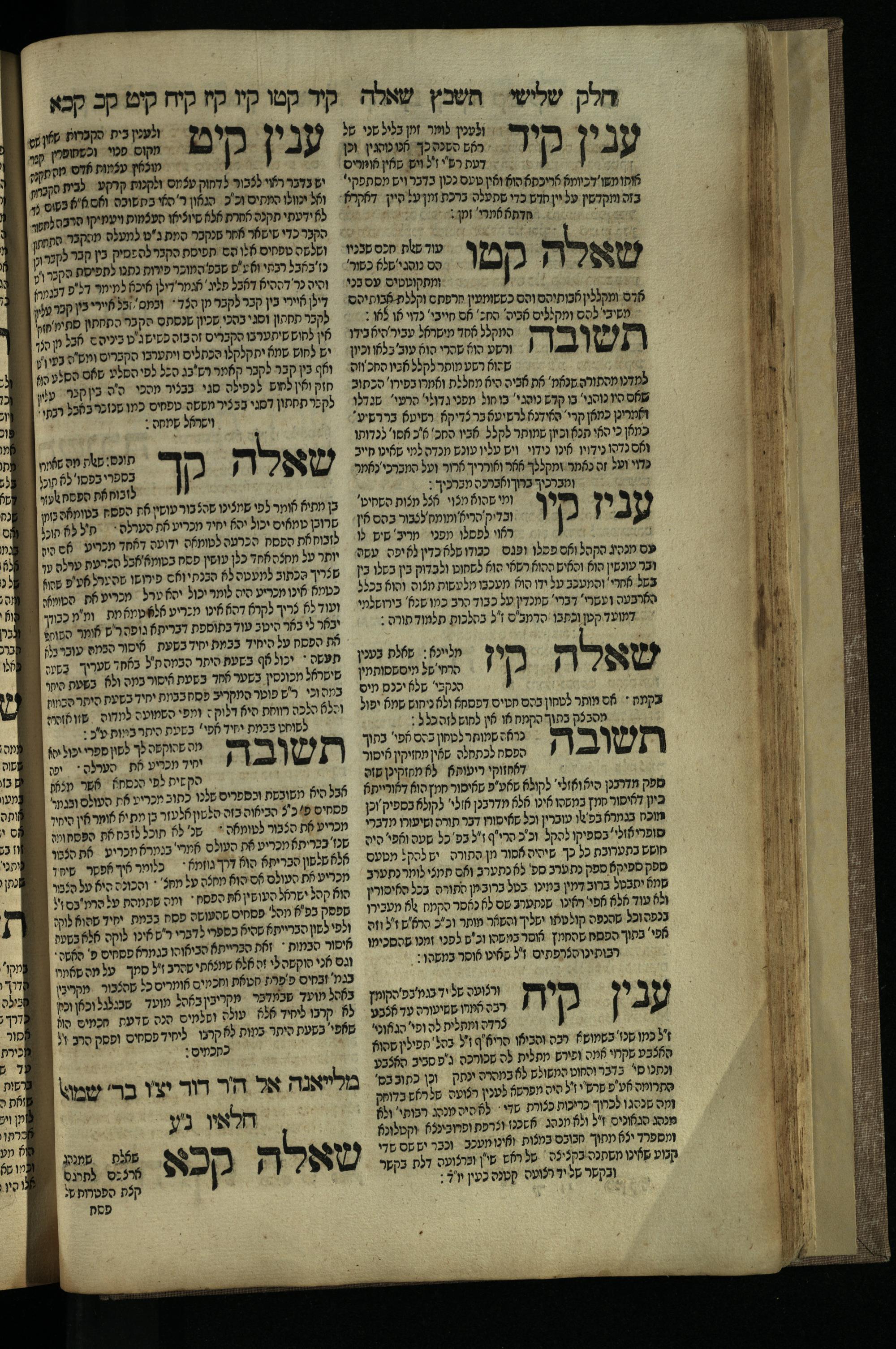 Ḥeleḳ reviʿi, ha-Ṭur ha-shelishi (1738) Ḥuṭ ha-meshulash / she-ḥiber ... Avraham ibn Ṭaṿah ... gam elu teshuvoto she-ḥiber be-koaḥ ḥokhmato ... gam hem ... ganuzim u-nishmarim ʿad ha-yom she-naʿaśu ḥeleḳ reviʿi le-sefer ha-Tashbets ... ṿe-ha-yom ha-zeh nitgalgel ha-zekhut ʿal yede ... Meʾir Ḳreśḳaś ... ben ... Netanʾel ...Ḥeleḳ reviʿi, ha-Ṭur ha-shelishi (1738) חוט המשולש / שחבר ... אברהם אבן טוואה ... גם אלו תשובותו שחבר בכח חכמתו ... גם הם ... גנוזים ונשמרים עד היום שנעשו חלק רביעי לספר התשבץ ...והיום הזה נתגלגל הזכות על ידי ... מאיר קרשקש ... בן ... נתנאל ...