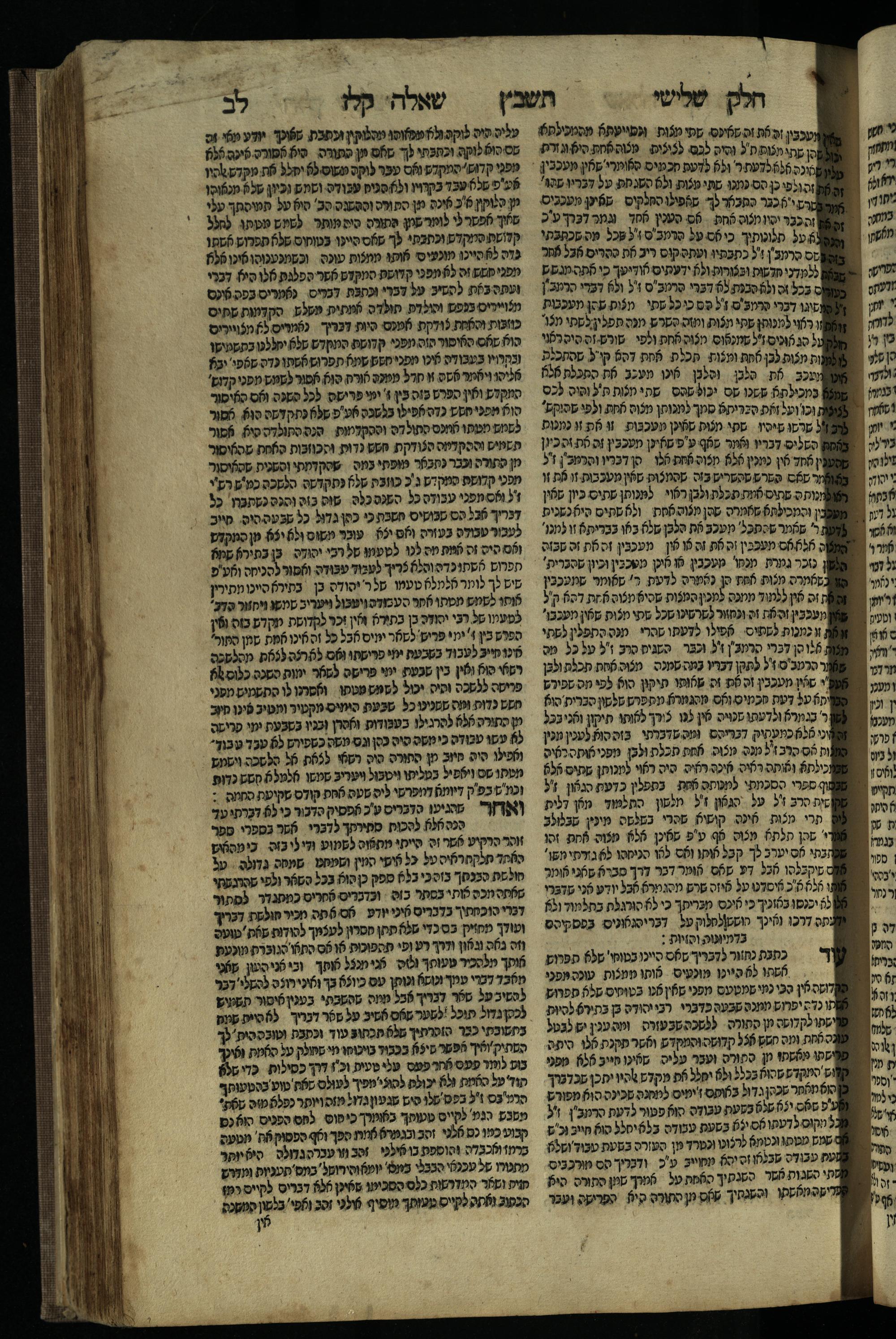 Ḥeleḳ reviʿi, ha-Ṭur ha-shelishi (1738) Ḥuṭ ha-meshulash / she-ḥiber ... Avraham ibn Ṭaṿah ... gam elu teshuvoto she-ḥiber be-koaḥ ḥokhmato ... gam hem ... ganuzim u-nishmarim ʿad ha-yom she-naʿaśu ḥeleḳ reviʿi le-sefer ha-Tashbets ... ṿe-ha-yom ha-zeh nitgalgel ha-zekhut ʿal yede ... Meʾir Ḳreśḳaś ... ben ... Netanʾel ...Ḥeleḳ reviʿi, ha-Ṭur ha-shelishi (1738) חוט המשולש / שחבר ... אברהם אבן טוואה ... גם אלו תשובותו שחבר בכח חכמתו ... גם הם ... גנוזים ונשמרים עד היום שנעשו חלק רביעי לספר התשבץ ...והיום הזה נתגלגל הזכות על ידי ... מאיר קרשקש ... בן ... נתנאל ...