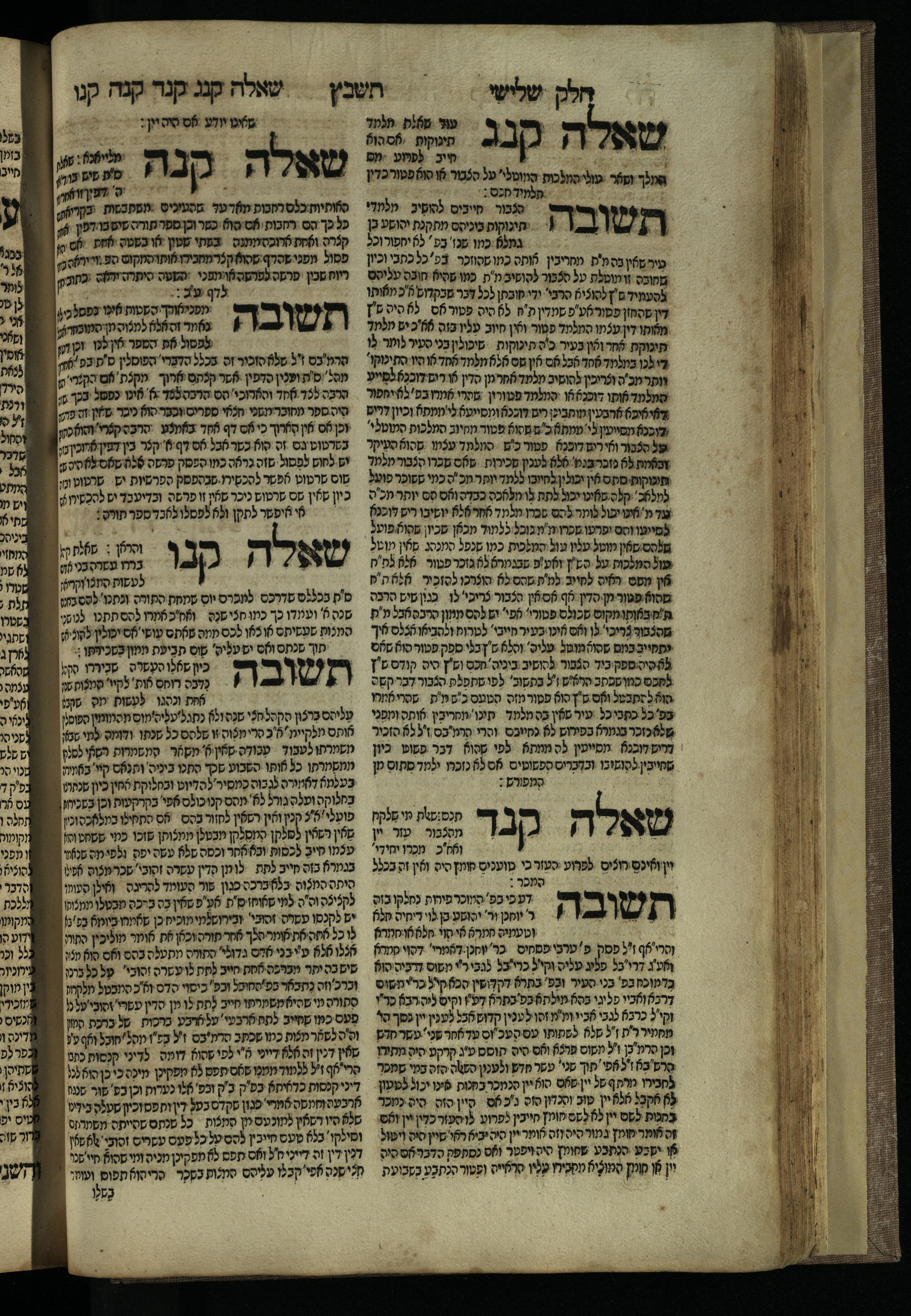 Ḥeleḳ reviʿi, ha-Ṭur ha-shelishi (1738) Ḥuṭ ha-meshulash / she-ḥiber ... Avraham ibn Ṭaṿah ... gam elu teshuvoto she-ḥiber be-koaḥ ḥokhmato ... gam hem ... ganuzim u-nishmarim ʿad ha-yom she-naʿaśu ḥeleḳ reviʿi le-sefer ha-Tashbets ... ṿe-ha-yom ha-zeh nitgalgel ha-zekhut ʿal yede ... Meʾir Ḳreśḳaś ... ben ... Netanʾel ...Ḥeleḳ reviʿi, ha-Ṭur ha-shelishi (1738) חוט המשולש / שחבר ... אברהם אבן טוואה ... גם אלו תשובותו שחבר בכח חכמתו ... גם הם ... גנוזים ונשמרים עד היום שנעשו חלק רביעי לספר התשבץ ...והיום הזה נתגלגל הזכות על ידי ... מאיר קרשקש ... בן ... נתנאל ...