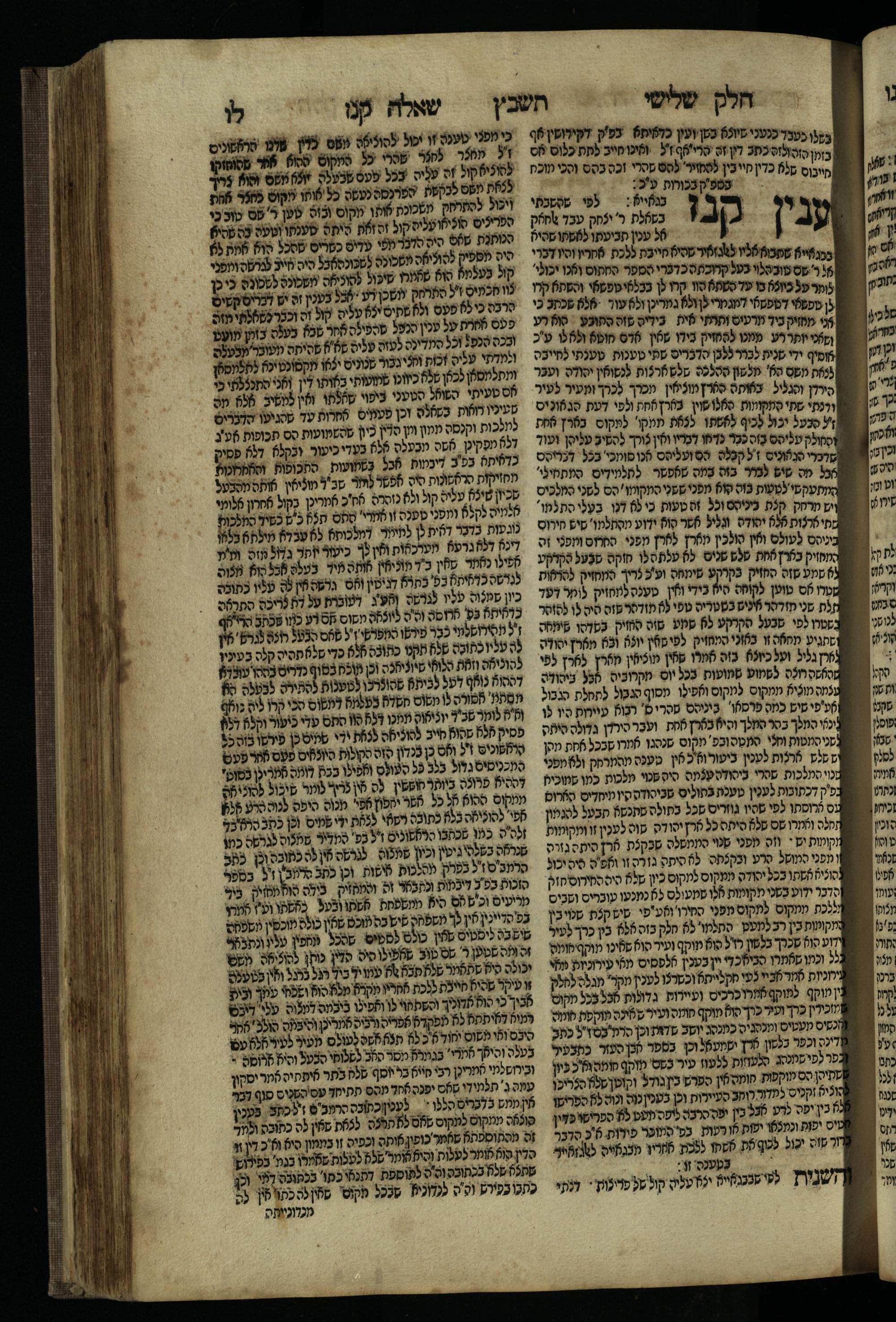 Ḥeleḳ reviʿi, ha-Ṭur ha-shelishi (1738) Ḥuṭ ha-meshulash / she-ḥiber ... Avraham ibn Ṭaṿah ... gam elu teshuvoto she-ḥiber be-koaḥ ḥokhmato ... gam hem ... ganuzim u-nishmarim ʿad ha-yom she-naʿaśu ḥeleḳ reviʿi le-sefer ha-Tashbets ... ṿe-ha-yom ha-zeh nitgalgel ha-zekhut ʿal yede ... Meʾir Ḳreśḳaś ... ben ... Netanʾel ...Ḥeleḳ reviʿi, ha-Ṭur ha-shelishi (1738) חוט המשולש / שחבר ... אברהם אבן טוואה ... גם אלו תשובותו שחבר בכח חכמתו ... גם הם ... גנוזים ונשמרים עד היום שנעשו חלק רביעי לספר התשבץ ...והיום הזה נתגלגל הזכות על ידי ... מאיר קרשקש ... בן ... נתנאל ...