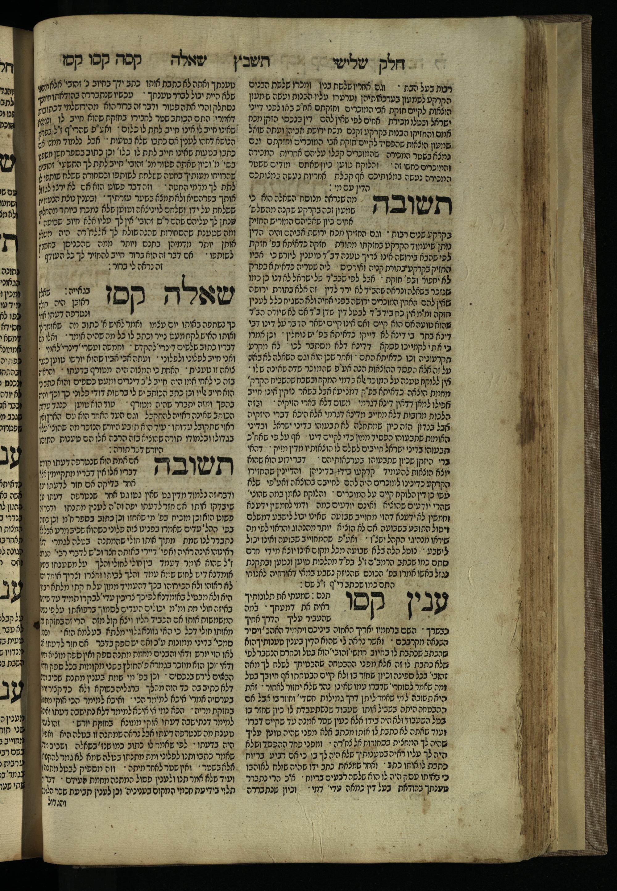 Ḥeleḳ reviʿi, ha-Ṭur ha-shelishi (1738) Ḥuṭ ha-meshulash / she-ḥiber ... Avraham ibn Ṭaṿah ... gam elu teshuvoto she-ḥiber be-koaḥ ḥokhmato ... gam hem ... ganuzim u-nishmarim ʿad ha-yom she-naʿaśu ḥeleḳ reviʿi le-sefer ha-Tashbets ... ṿe-ha-yom ha-zeh nitgalgel ha-zekhut ʿal yede ... Meʾir Ḳreśḳaś ... ben ... Netanʾel ...Ḥeleḳ reviʿi, ha-Ṭur ha-shelishi (1738) חוט המשולש / שחבר ... אברהם אבן טוואה ... גם אלו תשובותו שחבר בכח חכמתו ... גם הם ... גנוזים ונשמרים עד היום שנעשו חלק רביעי לספר התשבץ ...והיום הזה נתגלגל הזכות על ידי ... מאיר קרשקש ... בן ... נתנאל ...