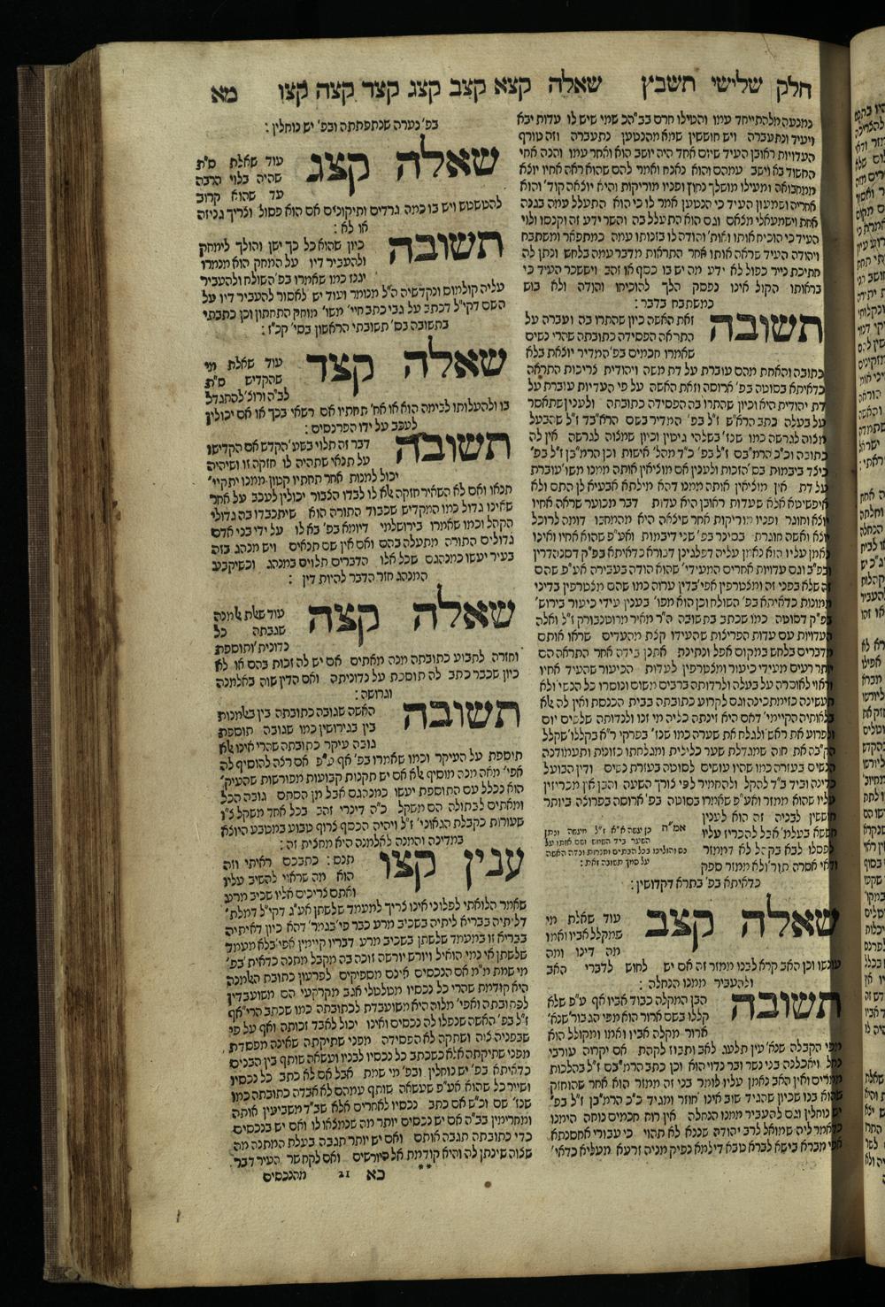 Ḥeleḳ reviʿi, ha-Ṭur ha-shelishi (1738) Ḥuṭ ha-meshulash / she-ḥiber ... Avraham ibn Ṭaṿah ... gam elu teshuvoto she-ḥiber be-koaḥ ḥokhmato ... gam hem ... ganuzim u-nishmarim ʿad ha-yom she-naʿaśu ḥeleḳ reviʿi le-sefer ha-Tashbets ... ṿe-ha-yom ha-zeh nitgalgel ha-zekhut ʿal yede ... Meʾir Ḳreśḳaś ... ben ... Netanʾel ...Ḥeleḳ reviʿi, ha-Ṭur ha-shelishi (1738) חוט המשולש / שחבר ... אברהם אבן טוואה ... גם אלו תשובותו שחבר בכח חכמתו ... גם הם ... גנוזים ונשמרים עד היום שנעשו חלק רביעי לספר התשבץ ...והיום הזה נתגלגל הזכות על ידי ... מאיר קרשקש ... בן ... נתנאל ...