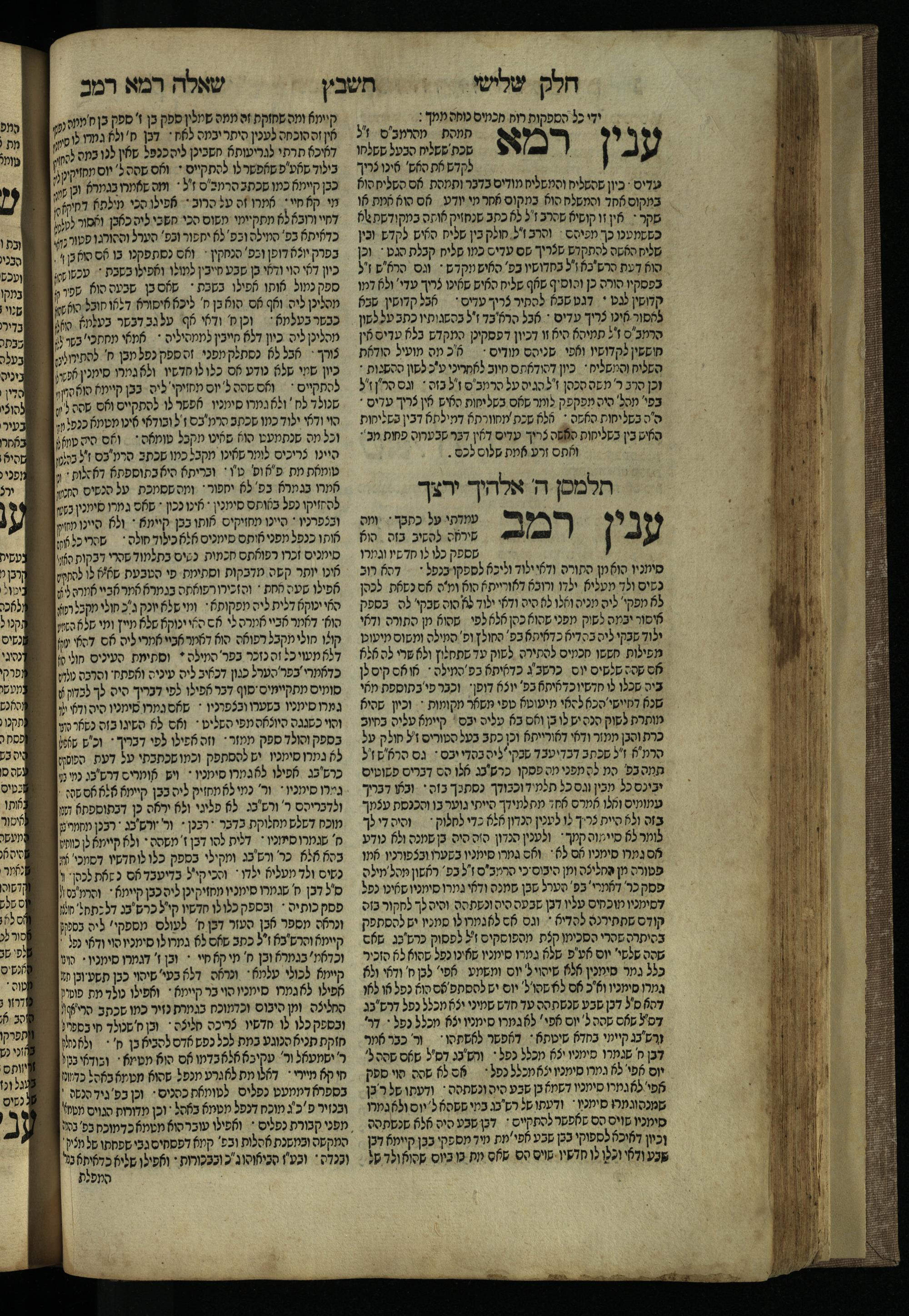 Ḥeleḳ reviʿi, ha-Ṭur ha-shelishi (1738) Ḥuṭ ha-meshulash / she-ḥiber ... Avraham ibn Ṭaṿah ... gam elu teshuvoto she-ḥiber be-koaḥ ḥokhmato ... gam hem ... ganuzim u-nishmarim ʿad ha-yom she-naʿaśu ḥeleḳ reviʿi le-sefer ha-Tashbets ... ṿe-ha-yom ha-zeh nitgalgel ha-zekhut ʿal yede ... Meʾir Ḳreśḳaś ... ben ... Netanʾel ...Ḥeleḳ reviʿi, ha-Ṭur ha-shelishi (1738) חוט המשולש / שחבר ... אברהם אבן טוואה ... גם אלו תשובותו שחבר בכח חכמתו ... גם הם ... גנוזים ונשמרים עד היום שנעשו חלק רביעי לספר התשבץ ...והיום הזה נתגלגל הזכות על ידי ... מאיר קרשקש ... בן ... נתנאל ...