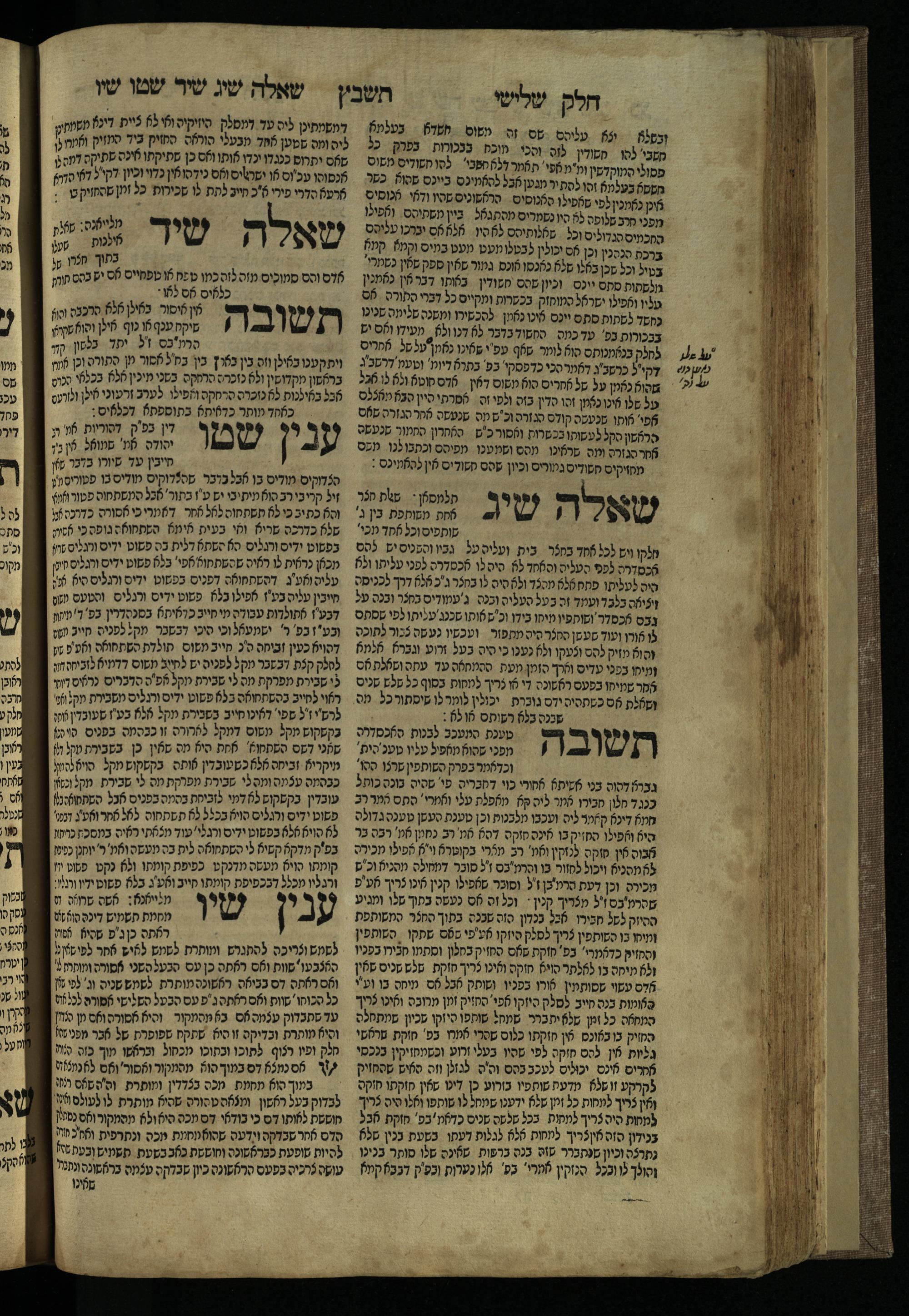 Ḥeleḳ reviʿi, ha-Ṭur ha-shelishi (1738) Ḥuṭ ha-meshulash / she-ḥiber ... Avraham ibn Ṭaṿah ... gam elu teshuvoto she-ḥiber be-koaḥ ḥokhmato ... gam hem ... ganuzim u-nishmarim ʿad ha-yom she-naʿaśu ḥeleḳ reviʿi le-sefer ha-Tashbets ... ṿe-ha-yom ha-zeh nitgalgel ha-zekhut ʿal yede ... Meʾir Ḳreśḳaś ... ben ... Netanʾel ...Ḥeleḳ reviʿi, ha-Ṭur ha-shelishi (1738) חוט המשולש / שחבר ... אברהם אבן טוואה ... גם אלו תשובותו שחבר בכח חכמתו ... גם הם ... גנוזים ונשמרים עד היום שנעשו חלק רביעי לספר התשבץ ...והיום הזה נתגלגל הזכות על ידי ... מאיר קרשקש ... בן ... נתנאל ...
