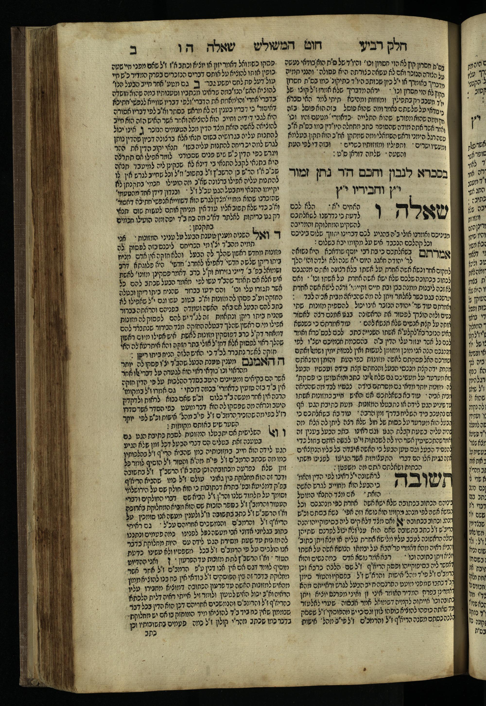 Ḥeleḳ reviʿi, ha-Ṭur ha-shelishi (1738) Ḥuṭ ha-meshulash / she-ḥiber ... Avraham ibn Ṭaṿah ... gam elu teshuvoto she-ḥiber be-koaḥ ḥokhmato ... gam hem ... ganuzim u-nishmarim ʿad ha-yom she-naʿaśu ḥeleḳ reviʿi le-sefer ha-Tashbets ... ṿe-ha-yom ha-zeh nitgalgel ha-zekhut ʿal yede ... Meʾir Ḳreśḳaś ... ben ... Netanʾel ...Ḥeleḳ reviʿi, ha-Ṭur ha-shelishi (1738) חוט המשולש / שחבר ... אברהם אבן טוואה ... גם אלו תשובותו שחבר בכח חכמתו ... גם הם ... גנוזים ונשמרים עד היום שנעשו חלק רביעי לספר התשבץ ...והיום הזה נתגלגל הזכות על ידי ... מאיר קרשקש ... בן ... נתנאל ...