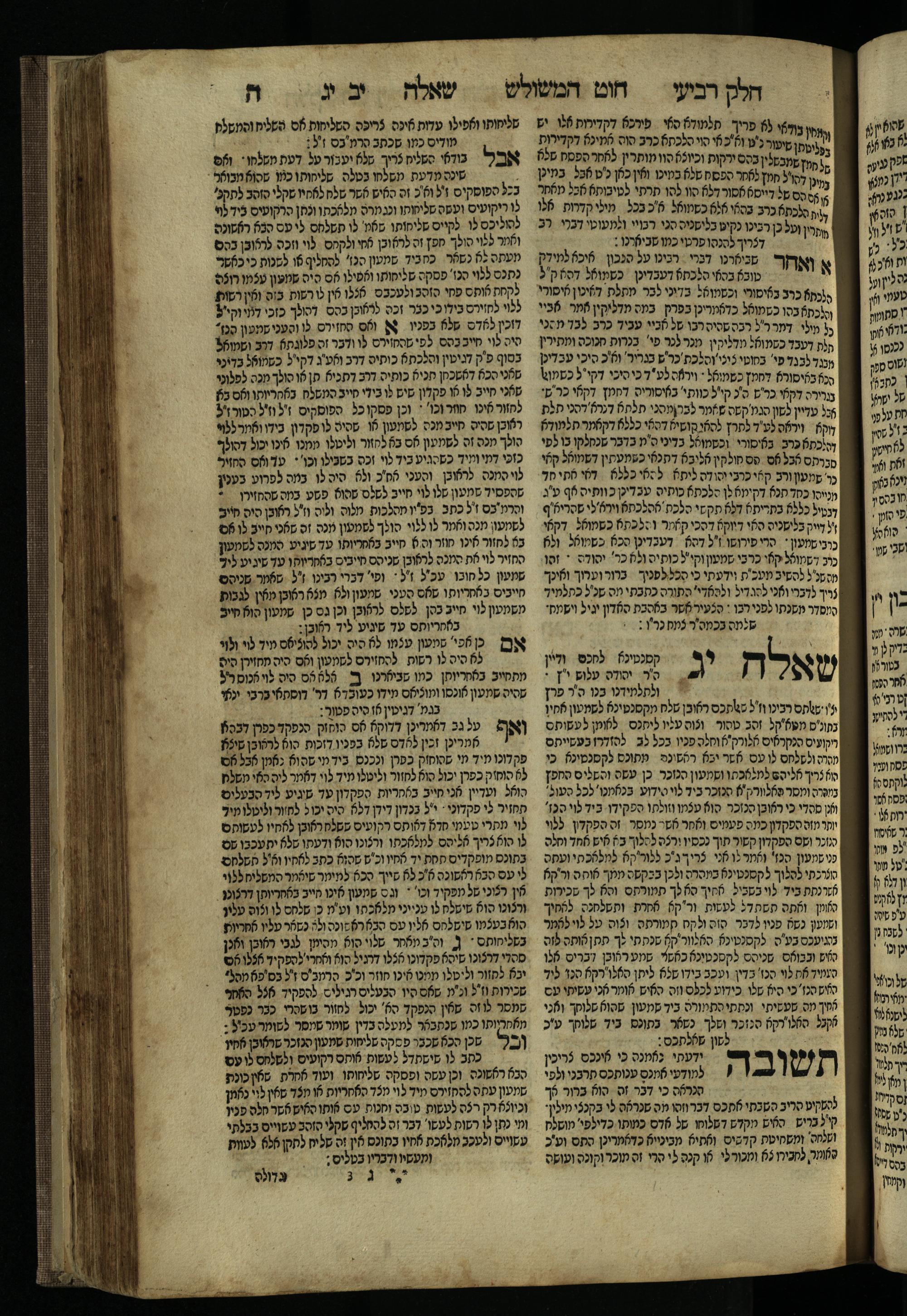 Ḥeleḳ reviʿi, ha-Ṭur ha-shelishi (1738) Ḥuṭ ha-meshulash / she-ḥiber ... Avraham ibn Ṭaṿah ... gam elu teshuvoto she-ḥiber be-koaḥ ḥokhmato ... gam hem ... ganuzim u-nishmarim ʿad ha-yom she-naʿaśu ḥeleḳ reviʿi le-sefer ha-Tashbets ... ṿe-ha-yom ha-zeh nitgalgel ha-zekhut ʿal yede ... Meʾir Ḳreśḳaś ... ben ... Netanʾel ...Ḥeleḳ reviʿi, ha-Ṭur ha-shelishi (1738) חוט המשולש / שחבר ... אברהם אבן טוואה ... גם אלו תשובותו שחבר בכח חכמתו ... גם הם ... גנוזים ונשמרים עד היום שנעשו חלק רביעי לספר התשבץ ...והיום הזה נתגלגל הזכות על ידי ... מאיר קרשקש ... בן ... נתנאל ...