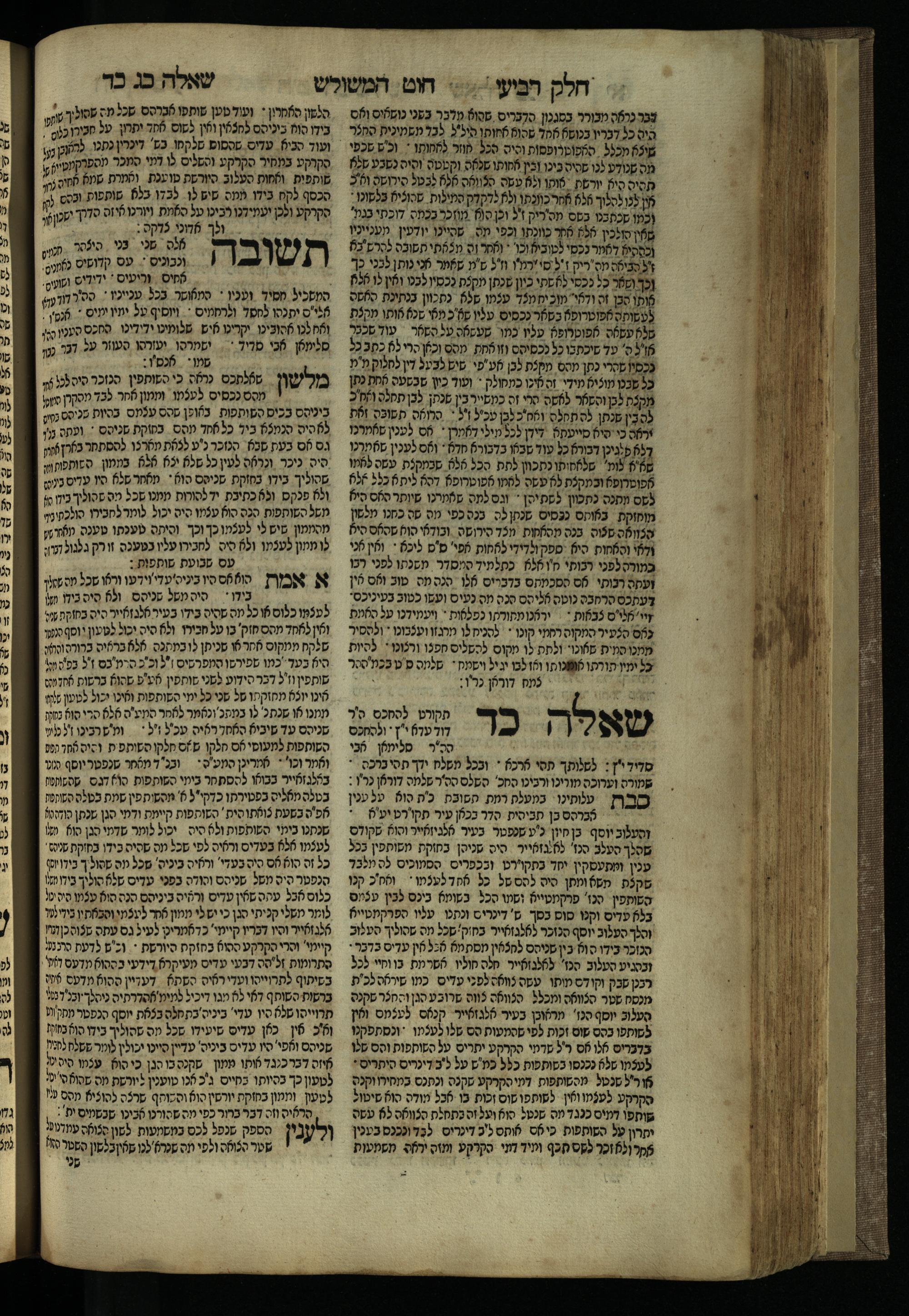 Ḥeleḳ reviʿi, ha-Ṭur ha-shelishi (1738) Ḥuṭ ha-meshulash / she-ḥiber ... Avraham ibn Ṭaṿah ... gam elu teshuvoto she-ḥiber be-koaḥ ḥokhmato ... gam hem ... ganuzim u-nishmarim ʿad ha-yom she-naʿaśu ḥeleḳ reviʿi le-sefer ha-Tashbets ... ṿe-ha-yom ha-zeh nitgalgel ha-zekhut ʿal yede ... Meʾir Ḳreśḳaś ... ben ... Netanʾel ...Ḥeleḳ reviʿi, ha-Ṭur ha-shelishi (1738) חוט המשולש / שחבר ... אברהם אבן טוואה ... גם אלו תשובותו שחבר בכח חכמתו ... גם הם ... גנוזים ונשמרים עד היום שנעשו חלק רביעי לספר התשבץ ...והיום הזה נתגלגל הזכות על ידי ... מאיר קרשקש ... בן ... נתנאל ...