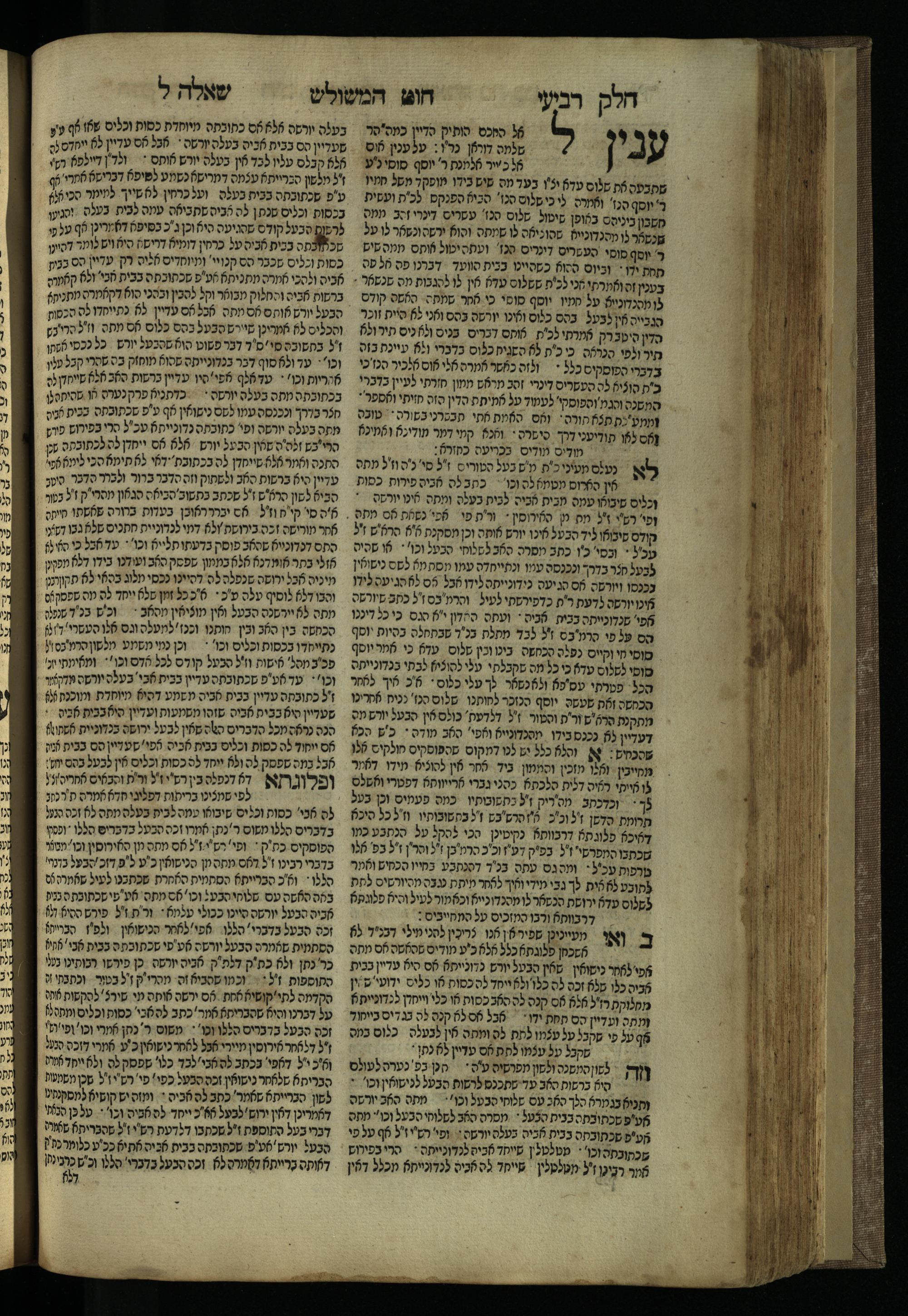Ḥeleḳ reviʿi, ha-Ṭur ha-shelishi (1738) Ḥuṭ ha-meshulash / she-ḥiber ... Avraham ibn Ṭaṿah ... gam elu teshuvoto she-ḥiber be-koaḥ ḥokhmato ... gam hem ... ganuzim u-nishmarim ʿad ha-yom she-naʿaśu ḥeleḳ reviʿi le-sefer ha-Tashbets ... ṿe-ha-yom ha-zeh nitgalgel ha-zekhut ʿal yede ... Meʾir Ḳreśḳaś ... ben ... Netanʾel ...Ḥeleḳ reviʿi, ha-Ṭur ha-shelishi (1738) חוט המשולש / שחבר ... אברהם אבן טוואה ... גם אלו תשובותו שחבר בכח חכמתו ... גם הם ... גנוזים ונשמרים עד היום שנעשו חלק רביעי לספר התשבץ ...והיום הזה נתגלגל הזכות על ידי ... מאיר קרשקש ... בן ... נתנאל ...