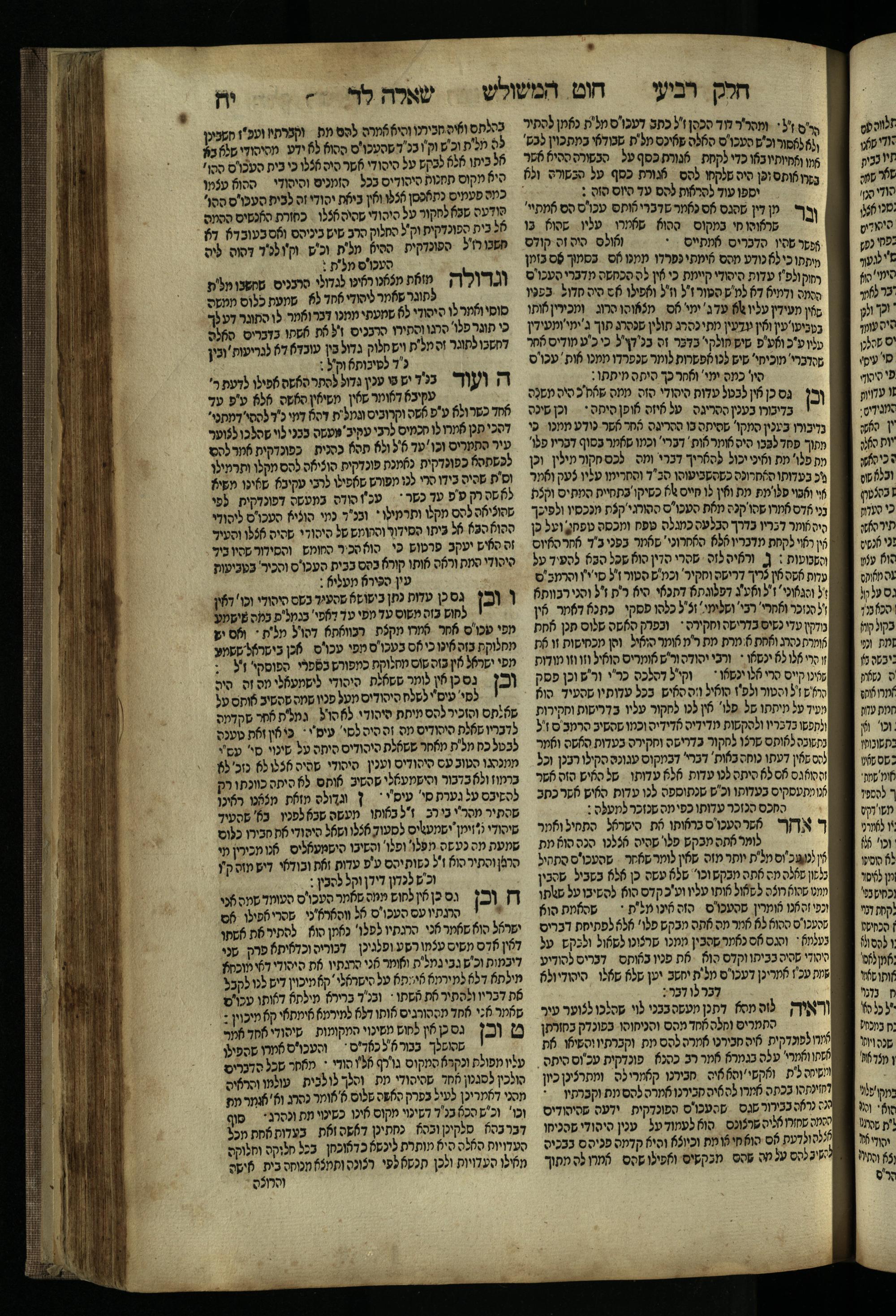 Ḥeleḳ reviʿi, ha-Ṭur ha-shelishi (1738) Ḥuṭ ha-meshulash / she-ḥiber ... Avraham ibn Ṭaṿah ... gam elu teshuvoto she-ḥiber be-koaḥ ḥokhmato ... gam hem ... ganuzim u-nishmarim ʿad ha-yom she-naʿaśu ḥeleḳ reviʿi le-sefer ha-Tashbets ... ṿe-ha-yom ha-zeh nitgalgel ha-zekhut ʿal yede ... Meʾir Ḳreśḳaś ... ben ... Netanʾel ...Ḥeleḳ reviʿi, ha-Ṭur ha-shelishi (1738) חוט המשולש / שחבר ... אברהם אבן טוואה ... גם אלו תשובותו שחבר בכח חכמתו ... גם הם ... גנוזים ונשמרים עד היום שנעשו חלק רביעי לספר התשבץ ...והיום הזה נתגלגל הזכות על ידי ... מאיר קרשקש ... בן ... נתנאל ...
