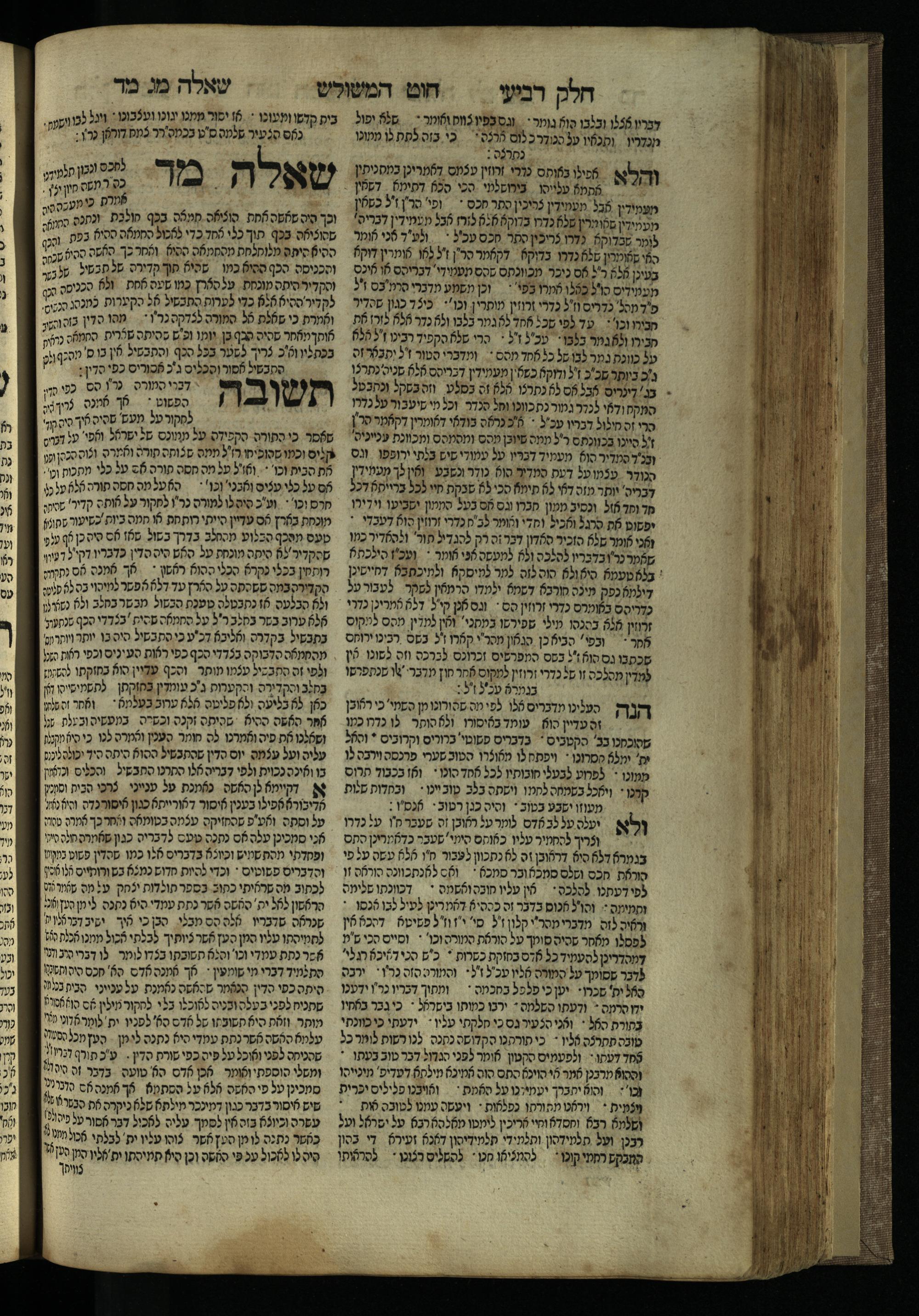 Ḥeleḳ reviʿi, ha-Ṭur ha-shelishi (1738) Ḥuṭ ha-meshulash / she-ḥiber ... Avraham ibn Ṭaṿah ... gam elu teshuvoto she-ḥiber be-koaḥ ḥokhmato ... gam hem ... ganuzim u-nishmarim ʿad ha-yom she-naʿaśu ḥeleḳ reviʿi le-sefer ha-Tashbets ... ṿe-ha-yom ha-zeh nitgalgel ha-zekhut ʿal yede ... Meʾir Ḳreśḳaś ... ben ... Netanʾel ...Ḥeleḳ reviʿi, ha-Ṭur ha-shelishi (1738) חוט המשולש / שחבר ... אברהם אבן טוואה ... גם אלו תשובותו שחבר בכח חכמתו ... גם הם ... גנוזים ונשמרים עד היום שנעשו חלק רביעי לספר התשבץ ...והיום הזה נתגלגל הזכות על ידי ... מאיר קרשקש ... בן ... נתנאל ...