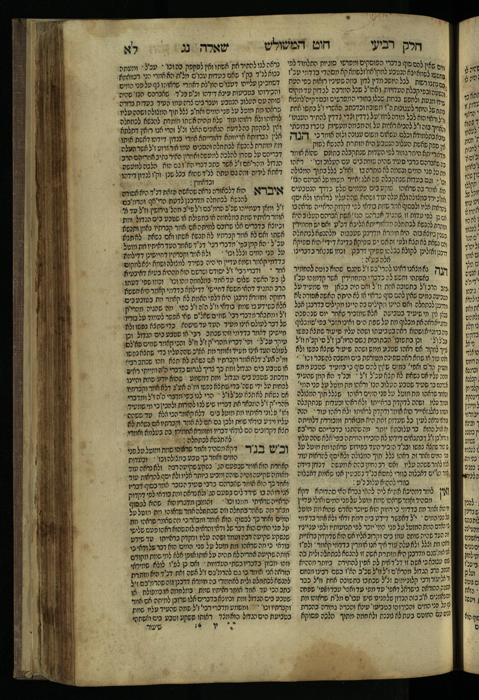Ḥeleḳ reviʿi, ha-Ṭur ha-shelishi (1738) Ḥuṭ ha-meshulash / she-ḥiber ... Avraham ibn Ṭaṿah ... gam elu teshuvoto she-ḥiber be-koaḥ ḥokhmato ... gam hem ... ganuzim u-nishmarim ʿad ha-yom she-naʿaśu ḥeleḳ reviʿi le-sefer ha-Tashbets ... ṿe-ha-yom ha-zeh nitgalgel ha-zekhut ʿal yede ... Meʾir Ḳreśḳaś ... ben ... Netanʾel ...Ḥeleḳ reviʿi, ha-Ṭur ha-shelishi (1738) חוט המשולש / שחבר ... אברהם אבן טוואה ... גם אלו תשובותו שחבר בכח חכמתו ... גם הם ... גנוזים ונשמרים עד היום שנעשו חלק רביעי לספר התשבץ ...והיום הזה נתגלגל הזכות על ידי ... מאיר קרשקש ... בן ... נתנאל ...