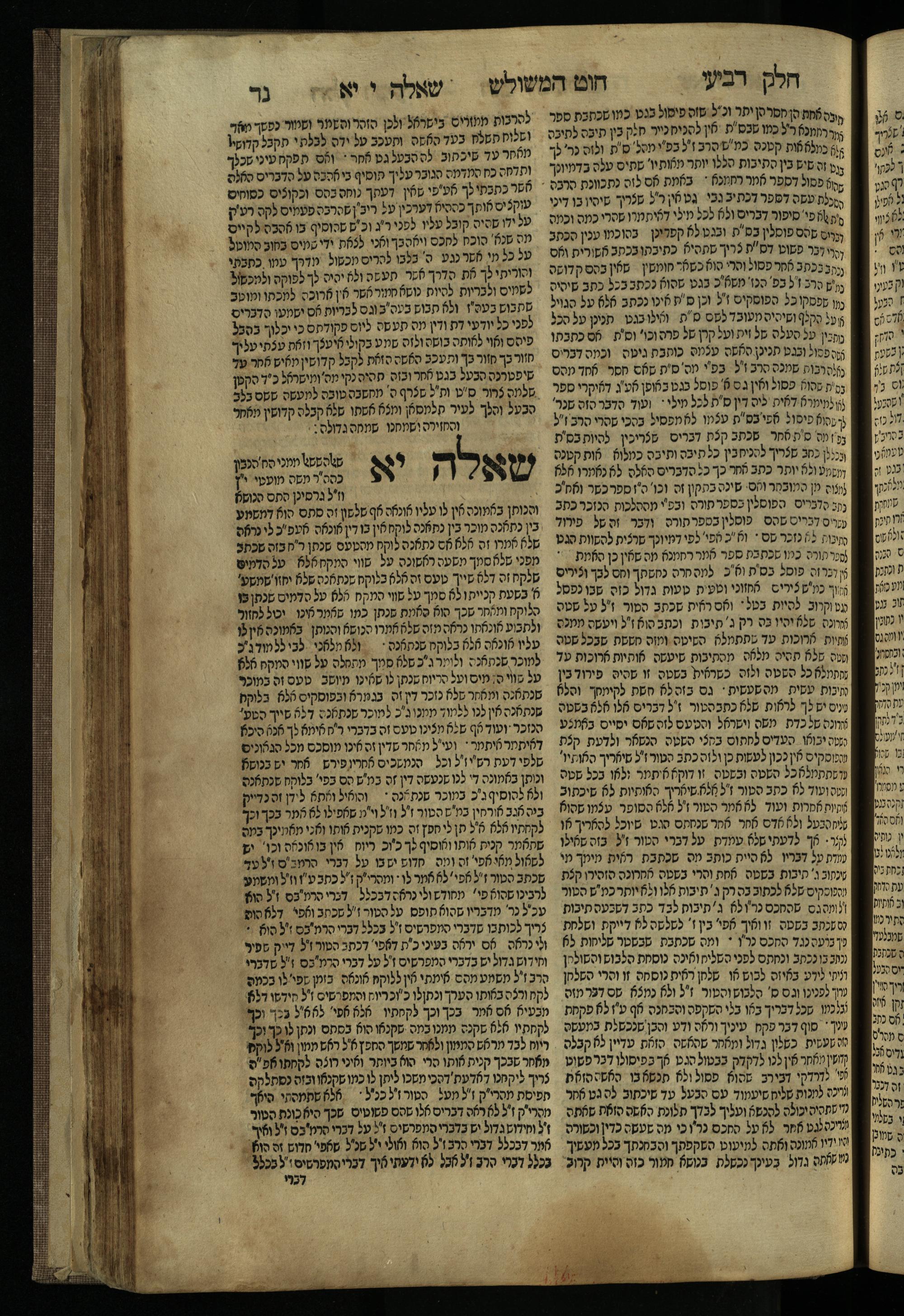 Ḥeleḳ reviʿi, ha-Ṭur ha-shelishi (1738) Ḥuṭ ha-meshulash / she-ḥiber ... Avraham ibn Ṭaṿah ... gam elu teshuvoto she-ḥiber be-koaḥ ḥokhmato ... gam hem ... ganuzim u-nishmarim ʿad ha-yom she-naʿaśu ḥeleḳ reviʿi le-sefer ha-Tashbets ... ṿe-ha-yom ha-zeh nitgalgel ha-zekhut ʿal yede ... Meʾir Ḳreśḳaś ... ben ... Netanʾel ...Ḥeleḳ reviʿi, ha-Ṭur ha-shelishi (1738) חוט המשולש / שחבר ... אברהם אבן טוואה ... גם אלו תשובותו שחבר בכח חכמתו ... גם הם ... גנוזים ונשמרים עד היום שנעשו חלק רביעי לספר התשבץ ...והיום הזה נתגלגל הזכות על ידי ... מאיר קרשקש ... בן ... נתנאל ...