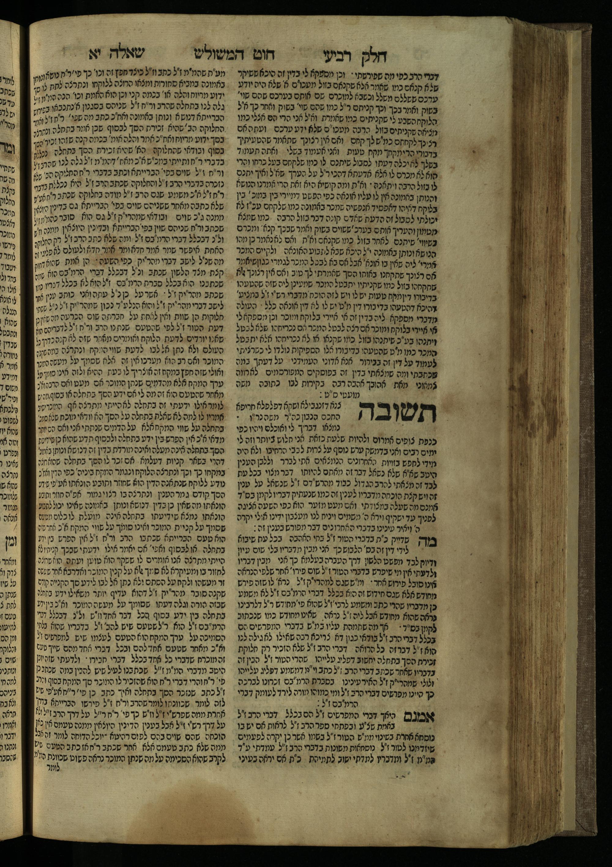 Ḥeleḳ reviʿi, ha-Ṭur ha-shelishi (1738) Ḥuṭ ha-meshulash / she-ḥiber ... Avraham ibn Ṭaṿah ... gam elu teshuvoto she-ḥiber be-koaḥ ḥokhmato ... gam hem ... ganuzim u-nishmarim ʿad ha-yom she-naʿaśu ḥeleḳ reviʿi le-sefer ha-Tashbets ... ṿe-ha-yom ha-zeh nitgalgel ha-zekhut ʿal yede ... Meʾir Ḳreśḳaś ... ben ... Netanʾel ...Ḥeleḳ reviʿi, ha-Ṭur ha-shelishi (1738) חוט המשולש / שחבר ... אברהם אבן טוואה ... גם אלו תשובותו שחבר בכח חכמתו ... גם הם ... גנוזים ונשמרים עד היום שנעשו חלק רביעי לספר התשבץ ...והיום הזה נתגלגל הזכות על ידי ... מאיר קרשקש ... בן ... נתנאל ...