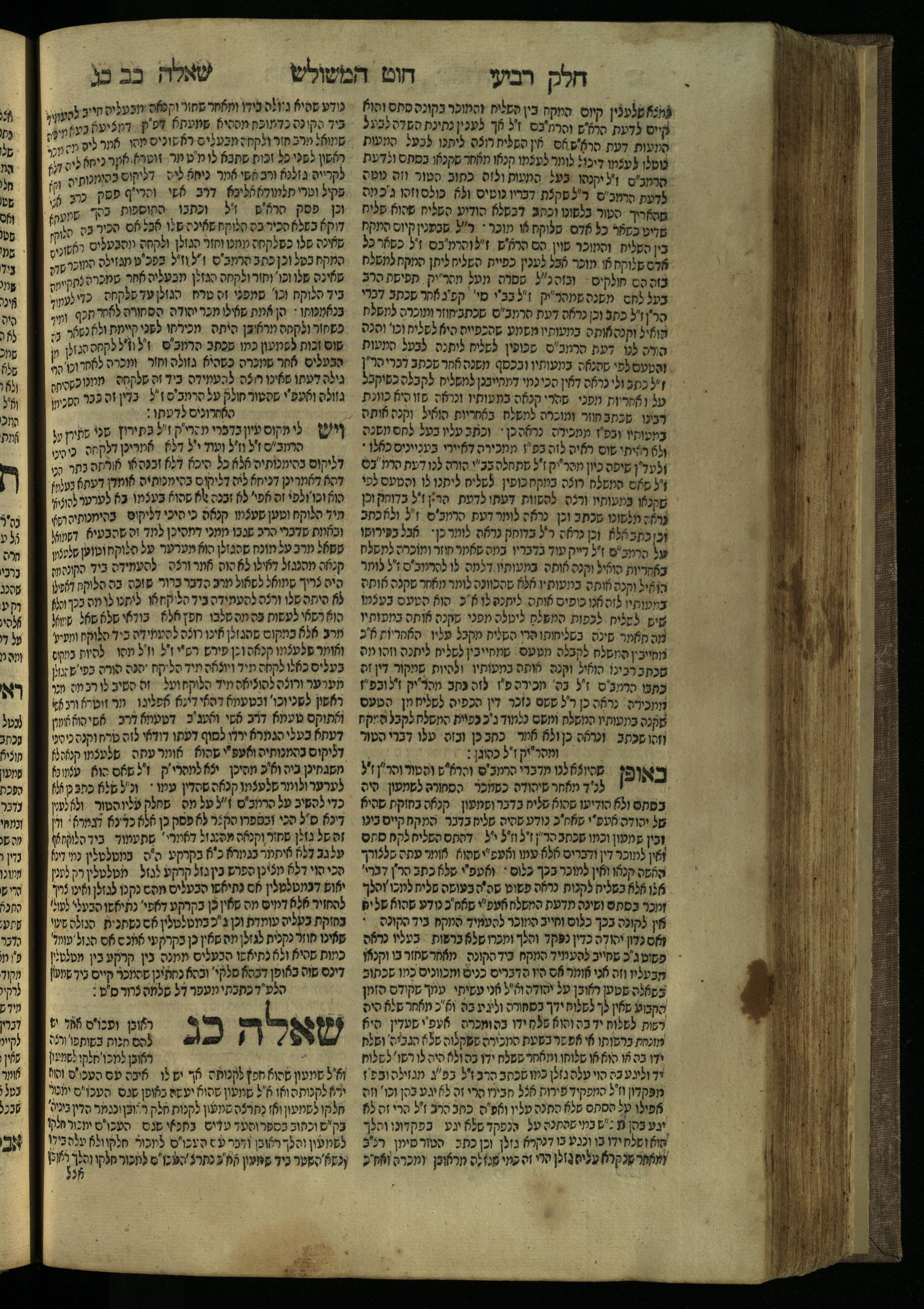 Ḥeleḳ reviʿi, ha-Ṭur ha-shelishi (1738) Ḥuṭ ha-meshulash / she-ḥiber ... Avraham ibn Ṭaṿah ... gam elu teshuvoto she-ḥiber be-koaḥ ḥokhmato ... gam hem ... ganuzim u-nishmarim ʿad ha-yom she-naʿaśu ḥeleḳ reviʿi le-sefer ha-Tashbets ... ṿe-ha-yom ha-zeh nitgalgel ha-zekhut ʿal yede ... Meʾir Ḳreśḳaś ... ben ... Netanʾel ...Ḥeleḳ reviʿi, ha-Ṭur ha-shelishi (1738) חוט המשולש / שחבר ... אברהם אבן טוואה ... גם אלו תשובותו שחבר בכח חכמתו ... גם הם ... גנוזים ונשמרים עד היום שנעשו חלק רביעי לספר התשבץ ...והיום הזה נתגלגל הזכות על ידי ... מאיר קרשקש ... בן ... נתנאל ...