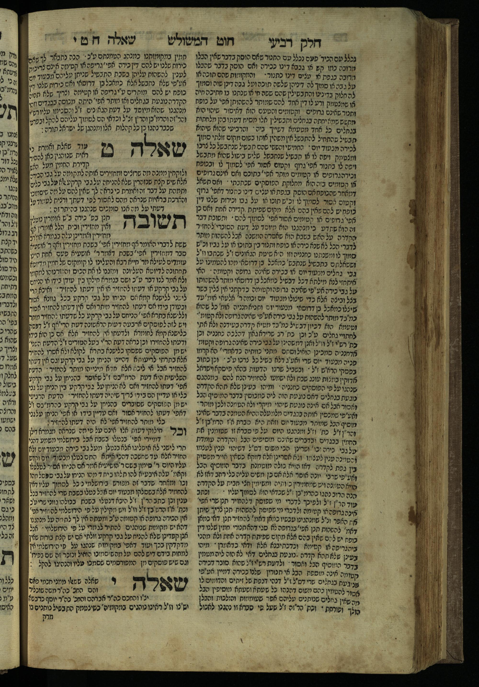 Ḥeleḳ reviʿi, ha-Ṭur ha-shelishi (1738) Ḥuṭ ha-meshulash / she-ḥiber ... Avraham ibn Ṭaṿah ... gam elu teshuvoto she-ḥiber be-koaḥ ḥokhmato ... gam hem ... ganuzim u-nishmarim ʿad ha-yom she-naʿaśu ḥeleḳ reviʿi le-sefer ha-Tashbets ... ṿe-ha-yom ha-zeh nitgalgel ha-zekhut ʿal yede ... Meʾir Ḳreśḳaś ... ben ... Netanʾel ...Ḥeleḳ reviʿi, ha-Ṭur ha-shelishi (1738) חוט המשולש / שחבר ... אברהם אבן טוואה ... גם אלו תשובותו שחבר בכח חכמתו ... גם הם ... גנוזים ונשמרים עד היום שנעשו חלק רביעי לספר התשבץ ...והיום הזה נתגלגל הזכות על ידי ... מאיר קרשקש ... בן ... נתנאל ...
