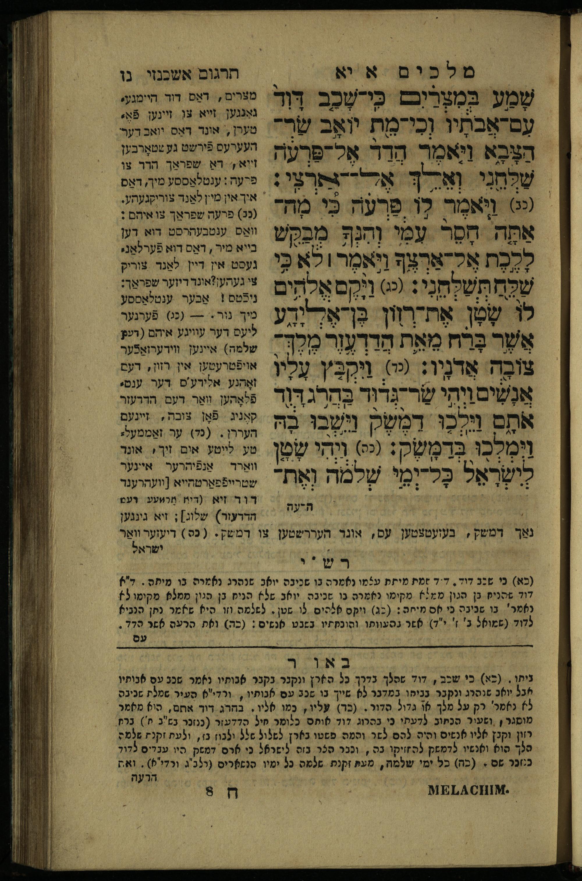 8 (1836) Sefer Melakhim / meturgam me-et ha-ḥakham mo.ha-r.R. Yosef Ṿayse n.y. u-mevoʾar me-et ha-ḥakham ha-medaḳdeḳ mo.h.r.R. Ṿolf Meʾir (moreh lashon ʿIvri ṿe-sifre Tanakh be-vet ḥinukh ha-normali asher be-Prag) ṿe-nilṿah elaṿ Perush Rashi ṿe-haʿtaḳat u-veʾur kol milot be-laʿaz me-et ha-madpis Mosheh ha-Leṿi Landa8 (1836) ספר מלכים / מתורגם מאת החכם מוהר''ר יוסף וויסע נ''י ומבואר מאת החכם המדקדק מוהר''ר וואלף מאיר (מורה לשון עברי וספרי התנ''ך בבית חנוך הנארמאלי אשר בפראג) ונלוה אליו פירוש רש''י והעתקת ובאור כל מלות בלע''ז מאת המדפיס משה הלוי לנדא