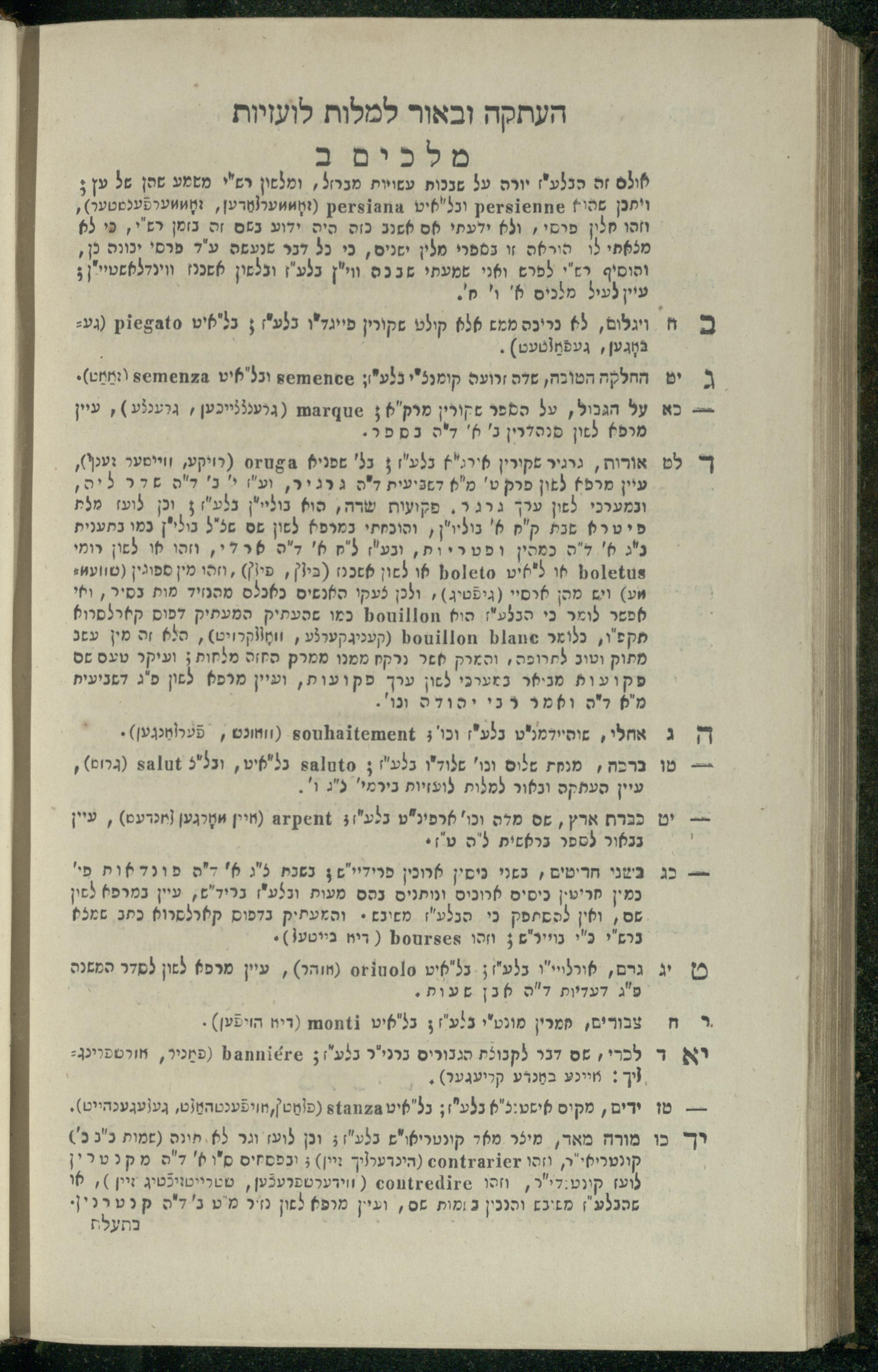 8 (1836) Sefer Melakhim / meturgam me-et ha-ḥakham mo.ha-r.R. Yosef Ṿayse n.y. u-mevoʾar me-et ha-ḥakham ha-medaḳdeḳ mo.h.r.R. Ṿolf Meʾir (moreh lashon ʿIvri ṿe-sifre Tanakh be-vet ḥinukh ha-normali asher be-Prag) ṿe-nilṿah elaṿ Perush Rashi ṿe-haʿtaḳat u-veʾur kol milot be-laʿaz me-et ha-madpis Mosheh ha-Leṿi Landa8 (1836) ספר מלכים / מתורגם מאת החכם מוהר''ר יוסף וויסע נ''י ומבואר מאת החכם המדקדק מוהר''ר וואלף מאיר (מורה לשון עברי וספרי התנ''ך בבית חנוך הנארמאלי אשר בפראג) ונלוה אליו פירוש רש''י והעתקת ובאור כל מלות בלע''ז מאת המדפיס משה הלוי לנדא