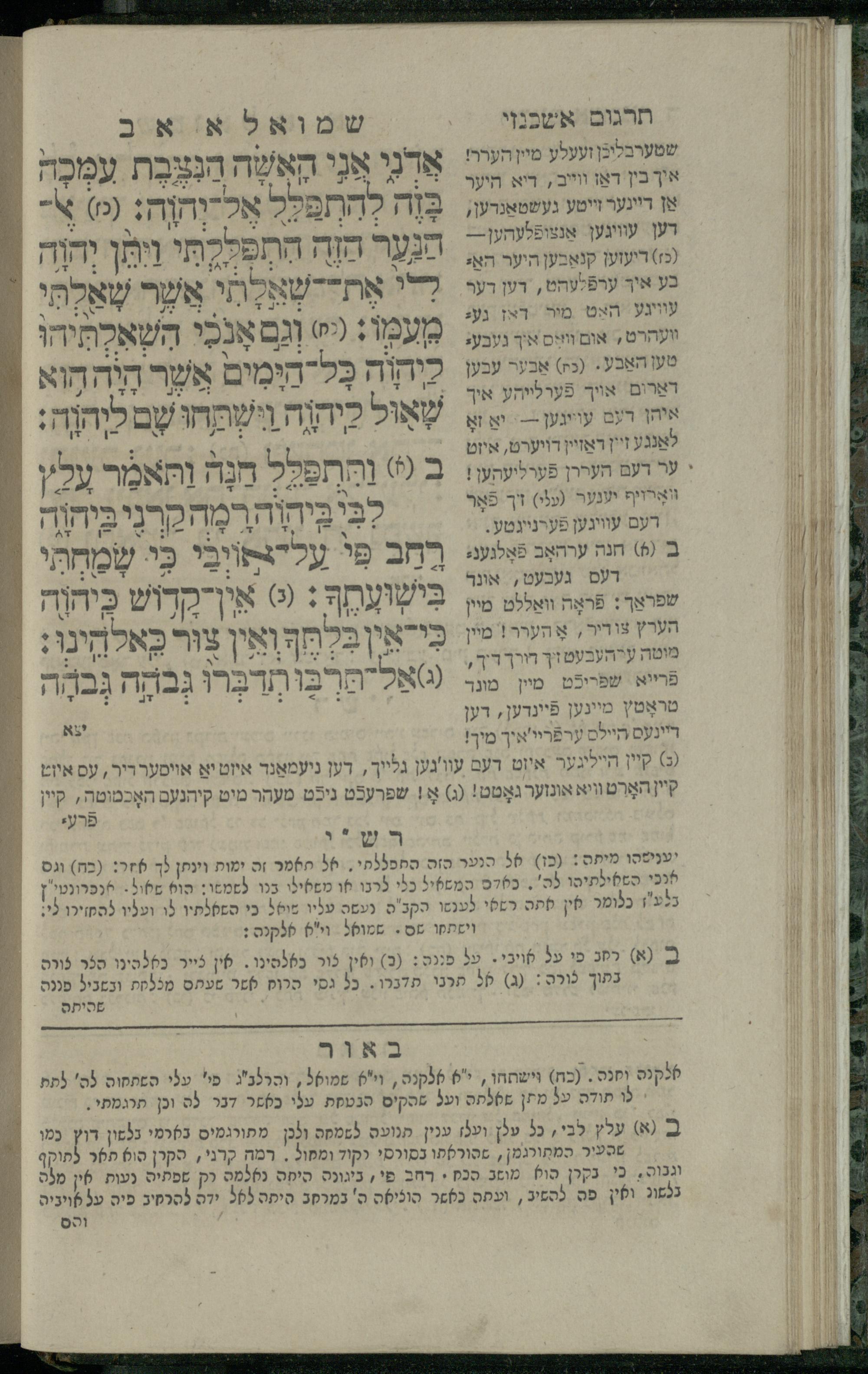 7 (1835) Sefer Shemuʾel / meturgam u-mevoʾar me-ḥadash, hugah be-viḳoret ʿain ha-medaḳdeḳ ha-ḥakham mo.h.r.R. Ṿolf Meʾir (moreh lashon ʿIvri be-vet ḥinukh ha-normali asher be-Prag) ṿe-nilṿah elaṿ Perush Rashi ṿe-haʿtaḳat u-veʾur kol milot be-laʿaz me-et ha-madpis Mosheh ha-Leṿi Landa7 (1835) ספר שמואל / מתורגם ומבואר מחדש, הוגה בבקרת עין המדקדק החכם מוהר''ר וואלף מאיר (מורה לשון עברי בבית חנוך הנארמאלי אשר בפראג) ונלוה אליו פירוש רש''י והעתקת ובאור כל מלות בלע''ז מאת המדפיס משה הלוי לנדא