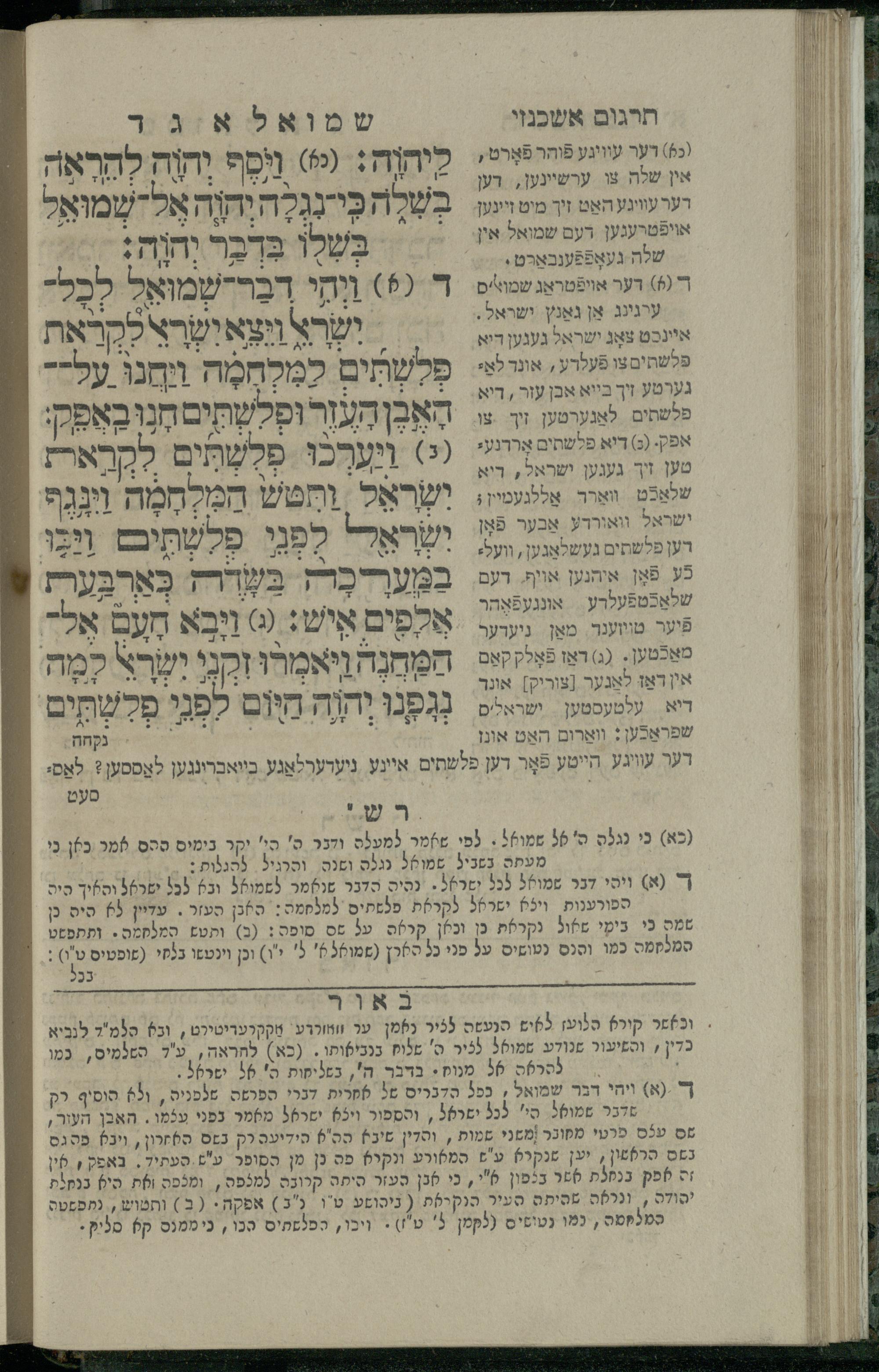 7 (1835) Sefer Shemuʾel / meturgam u-mevoʾar me-ḥadash, hugah be-viḳoret ʿain ha-medaḳdeḳ ha-ḥakham mo.h.r.R. Ṿolf Meʾir (moreh lashon ʿIvri be-vet ḥinukh ha-normali asher be-Prag) ṿe-nilṿah elaṿ Perush Rashi ṿe-haʿtaḳat u-veʾur kol milot be-laʿaz me-et ha-madpis Mosheh ha-Leṿi Landa7 (1835) ספר שמואל / מתורגם ומבואר מחדש, הוגה בבקרת עין המדקדק החכם מוהר''ר וואלף מאיר (מורה לשון עברי בבית חנוך הנארמאלי אשר בפראג) ונלוה אליו פירוש רש''י והעתקת ובאור כל מלות בלע''ז מאת המדפיס משה הלוי לנדא