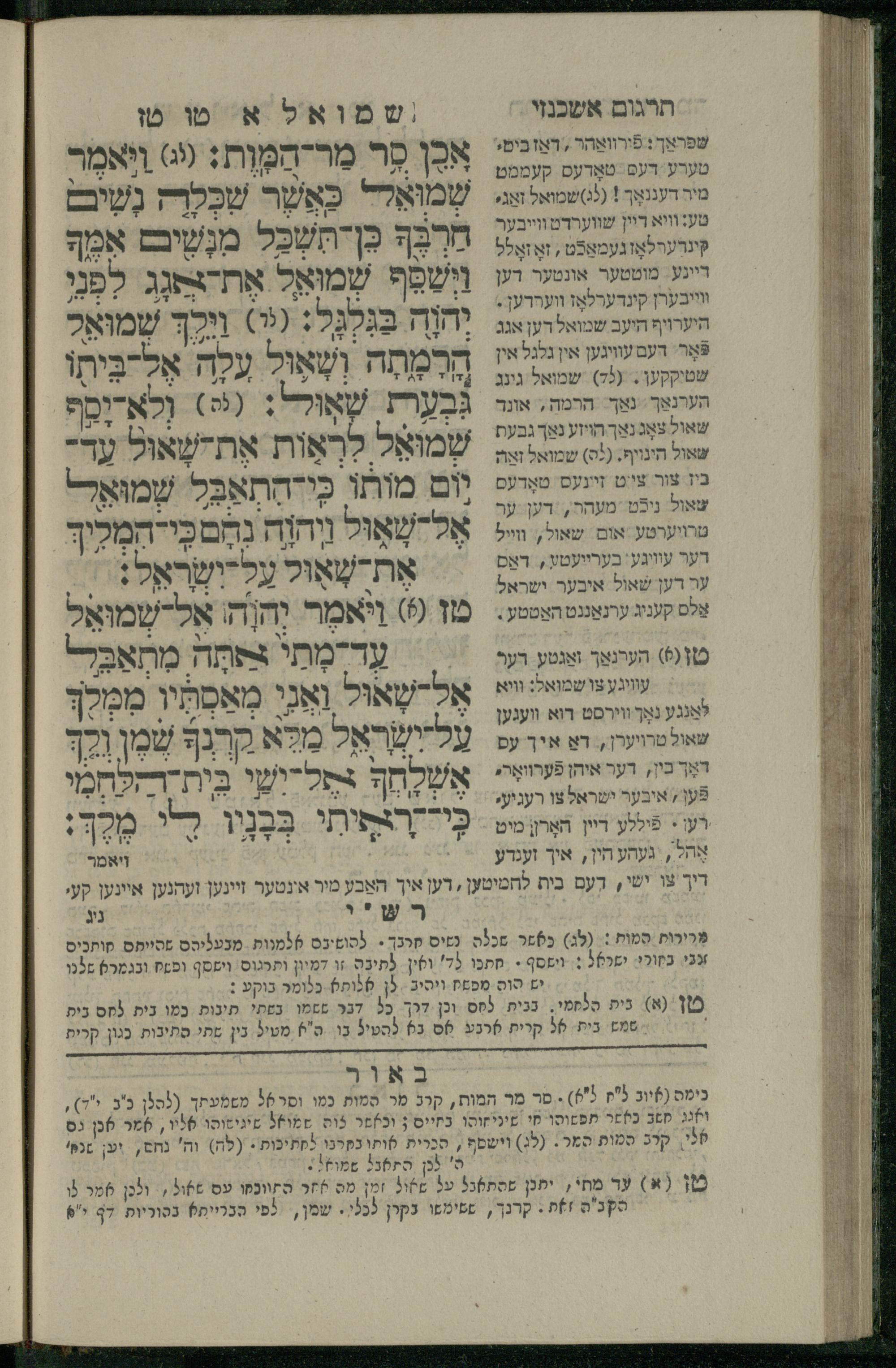 7 (1835) Sefer Shemuʾel / meturgam u-mevoʾar me-ḥadash, hugah be-viḳoret ʿain ha-medaḳdeḳ ha-ḥakham mo.h.r.R. Ṿolf Meʾir (moreh lashon ʿIvri be-vet ḥinukh ha-normali asher be-Prag) ṿe-nilṿah elaṿ Perush Rashi ṿe-haʿtaḳat u-veʾur kol milot be-laʿaz me-et ha-madpis Mosheh ha-Leṿi Landa7 (1835) ספר שמואל / מתורגם ומבואר מחדש, הוגה בבקרת עין המדקדק החכם מוהר''ר וואלף מאיר (מורה לשון עברי בבית חנוך הנארמאלי אשר בפראג) ונלוה אליו פירוש רש''י והעתקת ובאור כל מלות בלע''ז מאת המדפיס משה הלוי לנדא