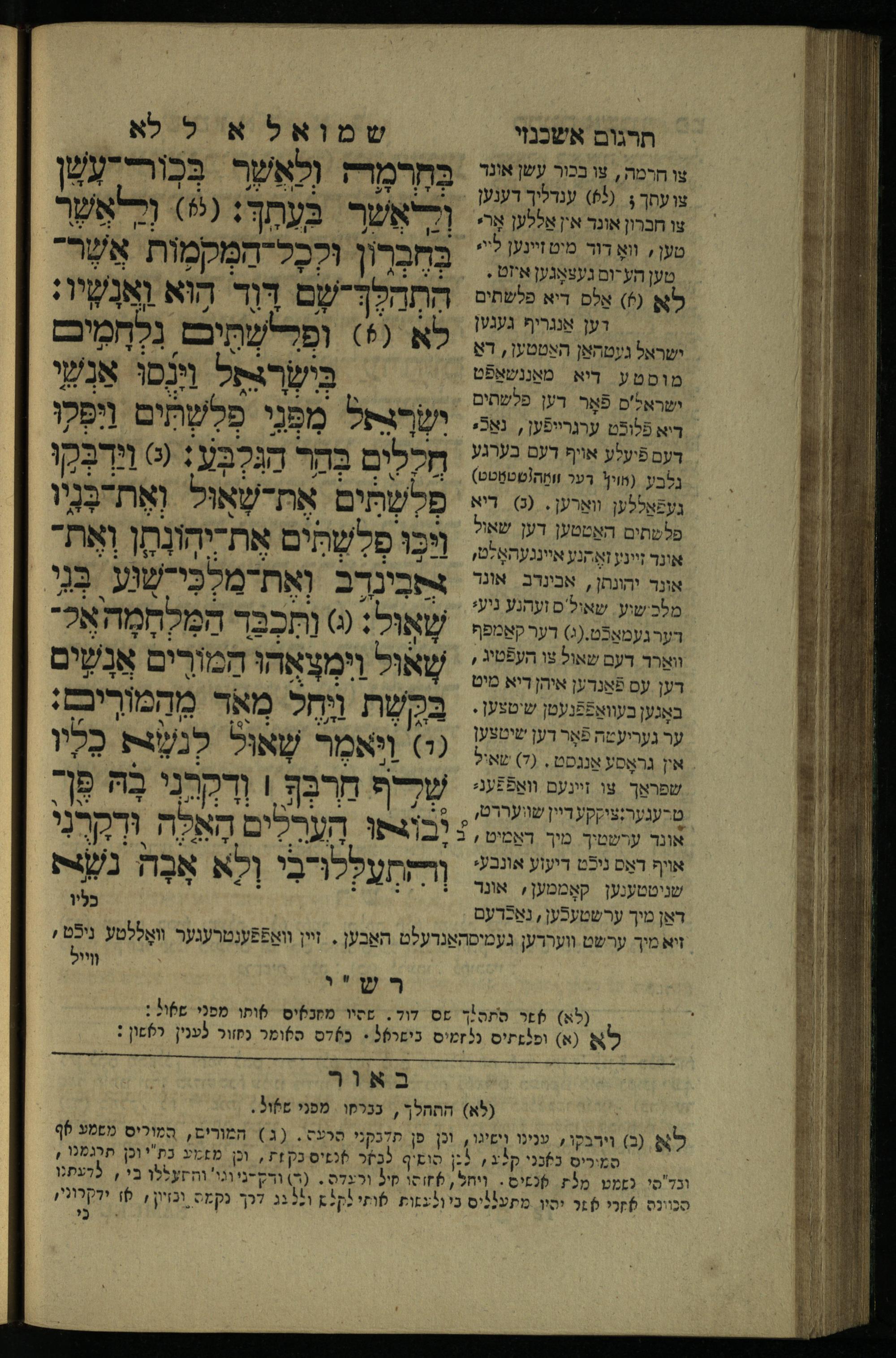 7 (1835) Sefer Shemuʾel / meturgam u-mevoʾar me-ḥadash, hugah be-viḳoret ʿain ha-medaḳdeḳ ha-ḥakham mo.h.r.R. Ṿolf Meʾir (moreh lashon ʿIvri be-vet ḥinukh ha-normali asher be-Prag) ṿe-nilṿah elaṿ Perush Rashi ṿe-haʿtaḳat u-veʾur kol milot be-laʿaz me-et ha-madpis Mosheh ha-Leṿi Landa7 (1835) ספר שמואל / מתורגם ומבואר מחדש, הוגה בבקרת עין המדקדק החכם מוהר''ר וואלף מאיר (מורה לשון עברי בבית חנוך הנארמאלי אשר בפראג) ונלוה אליו פירוש רש''י והעתקת ובאור כל מלות בלע''ז מאת המדפיס משה הלוי לנדא