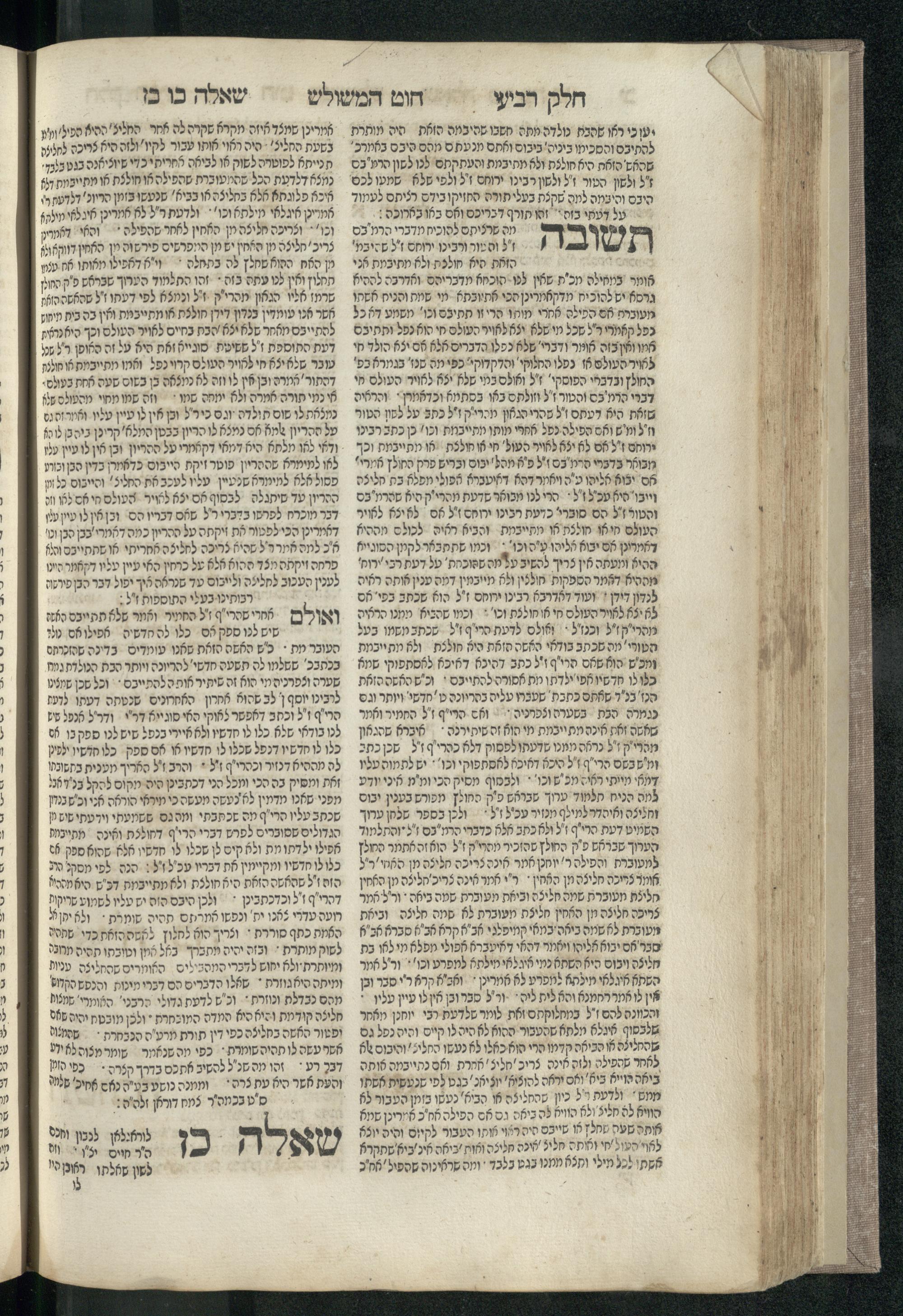 Ḥeleḳ reviʿi, ha-Ṭur ha-shelishi (1738) Ḥuṭ ha-meshulash / she-ḥiber ... Avraham ibn Ṭaṿah ... gam elu teshuvoto she-ḥiber be-koaḥ ḥokhmato ... gam hem ... ganuzim u-nishmarim ʿad ha-yom she-naʿaśu ḥeleḳ reviʿi le-sefer ha-Tashbets ... ṿe-ha-yom ha-zeh nitgalgel ha-zekhut ʿal yede ... Meʾir Ḳreśḳaś ... ben ... Netanʾel ...Ḥeleḳ reviʿi, ha-Ṭur ha-shelishi (1738) חוט המשולש / שחבר ... אברהם אבן טוואה ... גם אלו תשובותו שחבר בכח חכמתו ... גם הם ... גנוזים ונשמרים עד היום שנעשו חלק רביעי לספר התשבץ ...והיום הזה נתגלגל הזכות על ידי ... מאיר קרשקש ... בן ... נתנאל ...