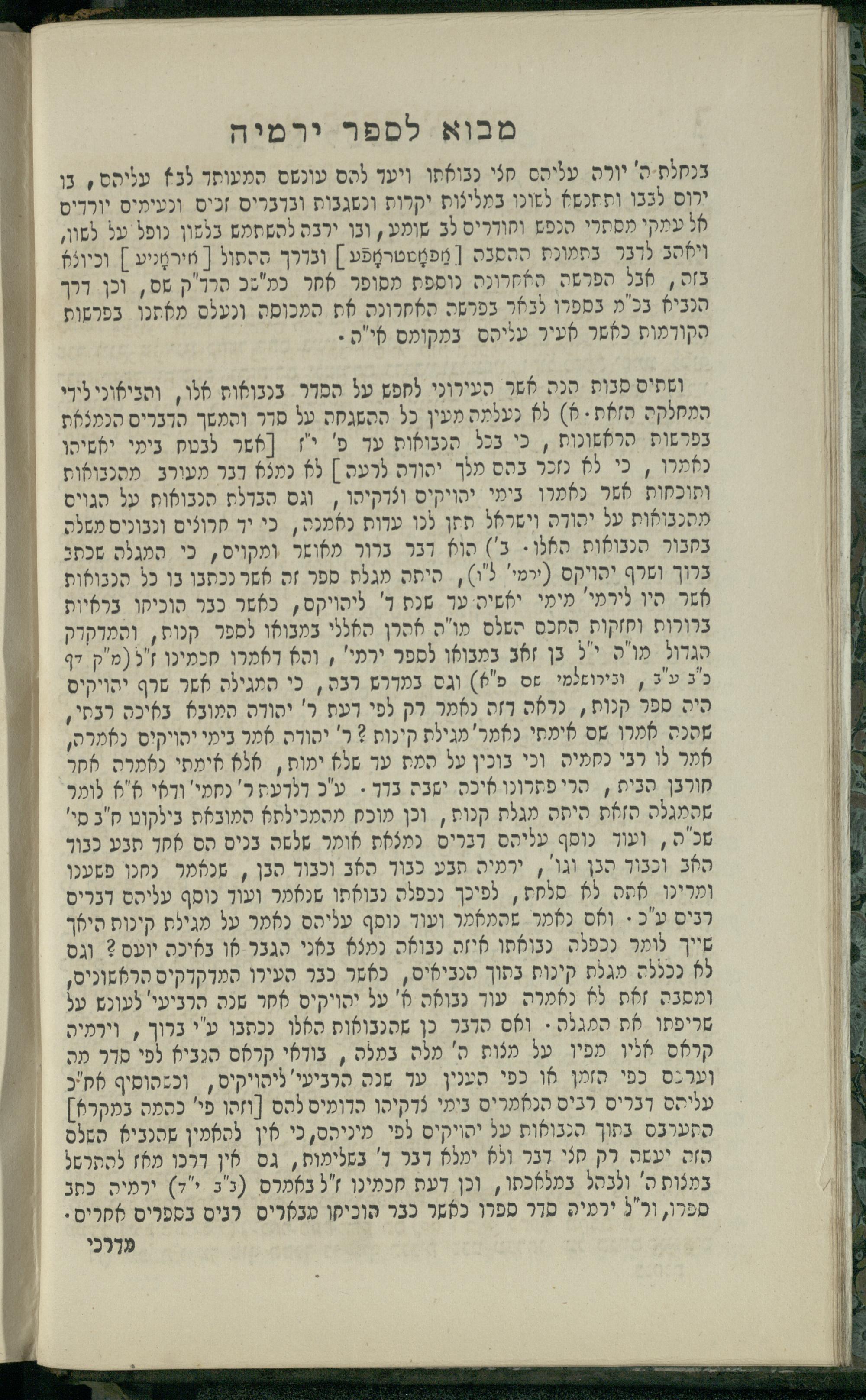 11 (1836) Sefer Yirmeyah / meturgam u-mevoʾar me-ḥadash me-et ha-Rav m.h. Shelomoh ben mo.h. Daṿid Zakhs (a.b.d. di-ḳ.ḳ. Likhṭenshṭadṭ u-gelilot Elenbogen ṿe-Zaʾats be-medinat Behmen) ṿe-nilṿah elaṿ Perush Rashi ṿe-haʿtaḳah u-veʾur kol milot be-laʿaz me-et ha-madpis Mosheh ha-Leṿi Landa11 (1836) ספר ירמיה / מתורגם ומבואר מחדש מאת הרב מ"ה שלמה בן מו"ה דוד זאכס (אב"ד דק"ק ליכטענשטאדט וגלילות עלנבאגען וזאאץ במדינת בעהמען) ונלוה אליו פירוש רש''י והעתקה ובאור כל מלות בלע''ז מאת המדפיס משה הלוי לנדא