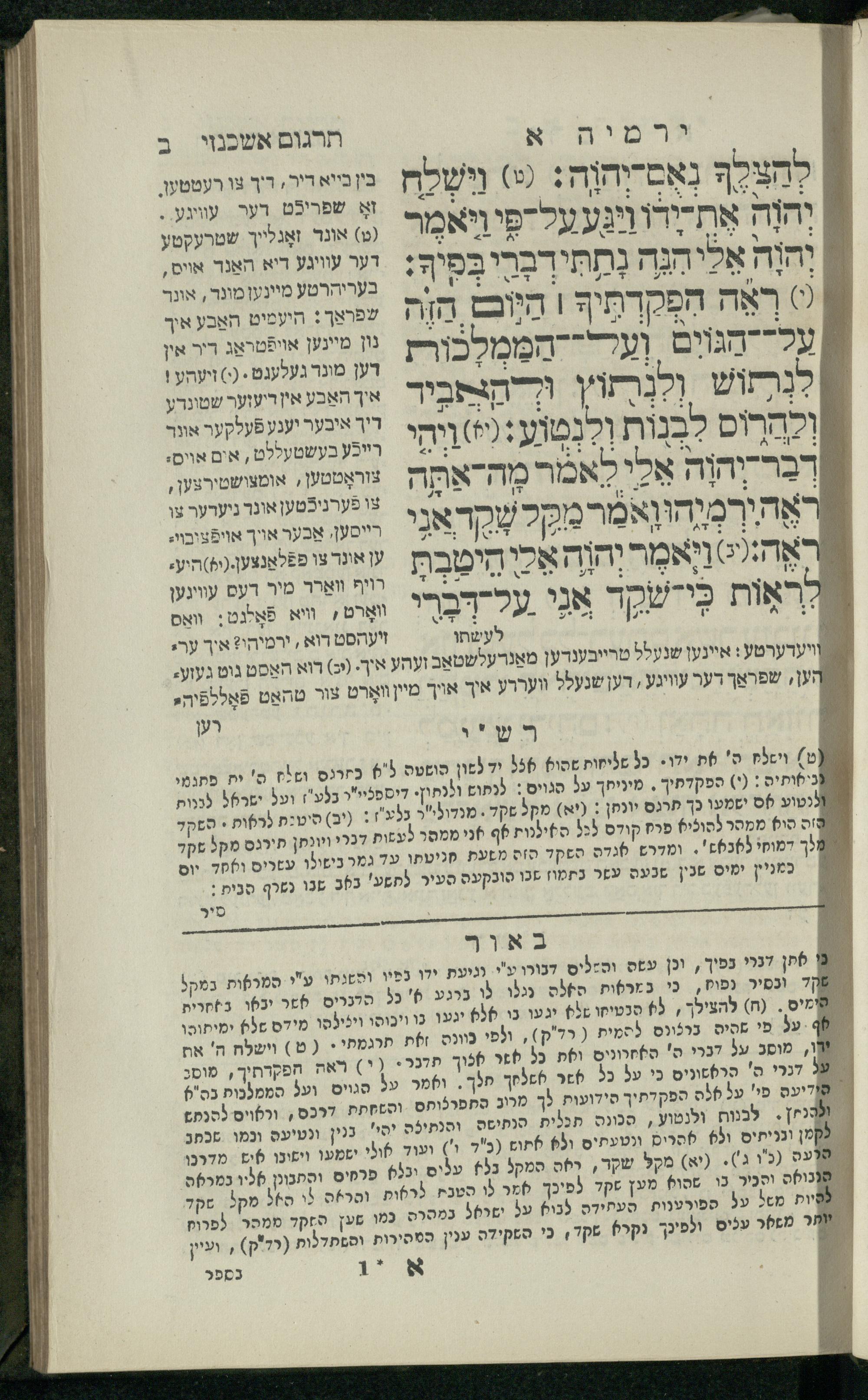 11 (1836) Sefer Yirmeyah / meturgam u-mevoʾar me-ḥadash me-et ha-Rav m.h. Shelomoh ben mo.h. Daṿid Zakhs (a.b.d. di-ḳ.ḳ. Likhṭenshṭadṭ u-gelilot Elenbogen ṿe-Zaʾats be-medinat Behmen) ṿe-nilṿah elaṿ Perush Rashi ṿe-haʿtaḳah u-veʾur kol milot be-laʿaz me-et ha-madpis Mosheh ha-Leṿi Landa11 (1836) ספר ירמיה / מתורגם ומבואר מחדש מאת הרב מ"ה שלמה בן מו"ה דוד זאכס (אב"ד דק"ק ליכטענשטאדט וגלילות עלנבאגען וזאאץ במדינת בעהמען) ונלוה אליו פירוש רש''י והעתקה ובאור כל מלות בלע''ז מאת המדפיס משה הלוי לנדא