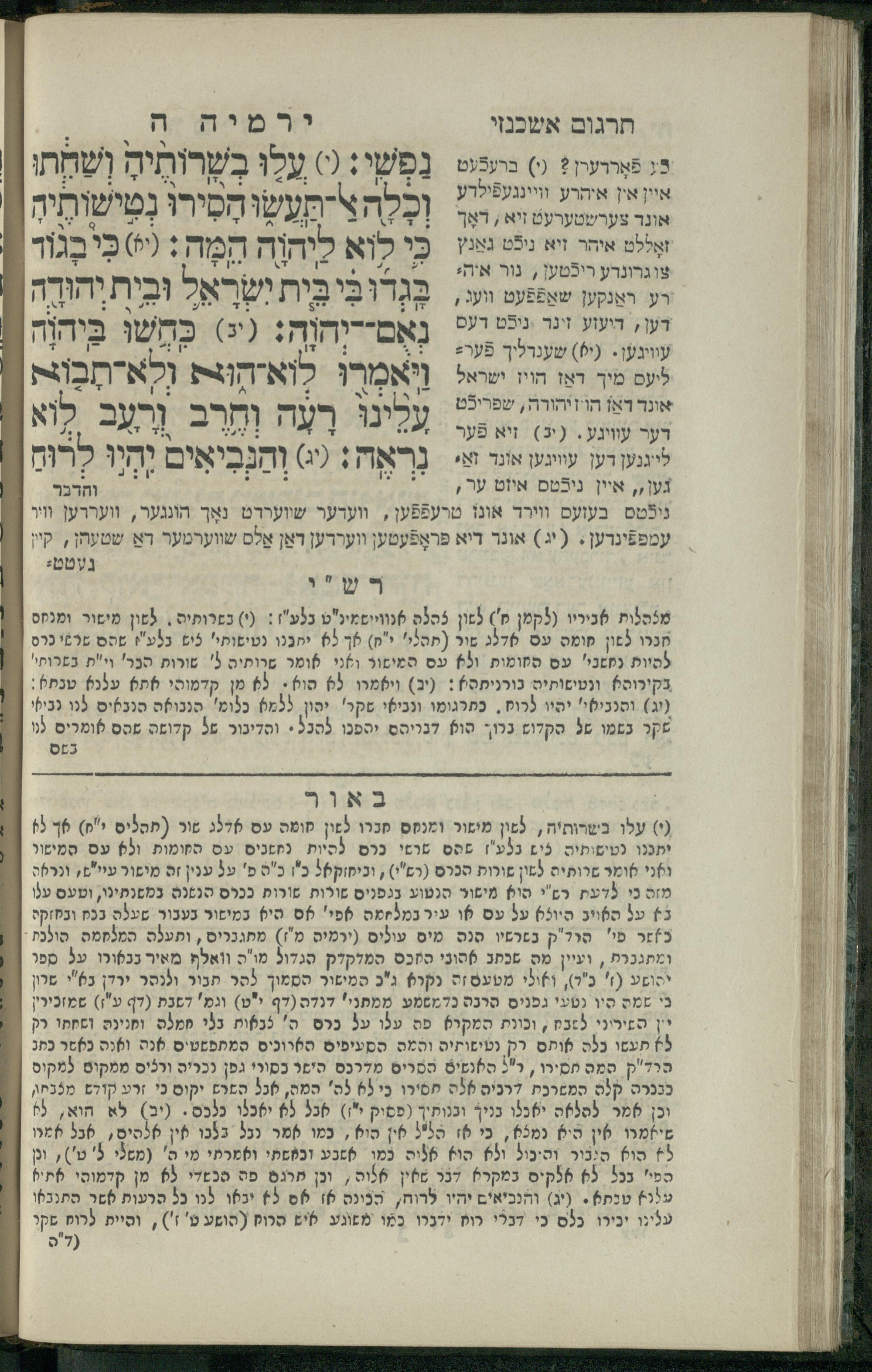 11 (1836) Sefer Yirmeyah / meturgam u-mevoʾar me-ḥadash me-et ha-Rav m.h. Shelomoh ben mo.h. Daṿid Zakhs (a.b.d. di-ḳ.ḳ. Likhṭenshṭadṭ u-gelilot Elenbogen ṿe-Zaʾats be-medinat Behmen) ṿe-nilṿah elaṿ Perush Rashi ṿe-haʿtaḳah u-veʾur kol milot be-laʿaz me-et ha-madpis Mosheh ha-Leṿi Landa11 (1836) ספר ירמיה / מתורגם ומבואר מחדש מאת הרב מ"ה שלמה בן מו"ה דוד זאכס (אב"ד דק"ק ליכטענשטאדט וגלילות עלנבאגען וזאאץ במדינת בעהמען) ונלוה אליו פירוש רש''י והעתקה ובאור כל מלות בלע''ז מאת המדפיס משה הלוי לנדא