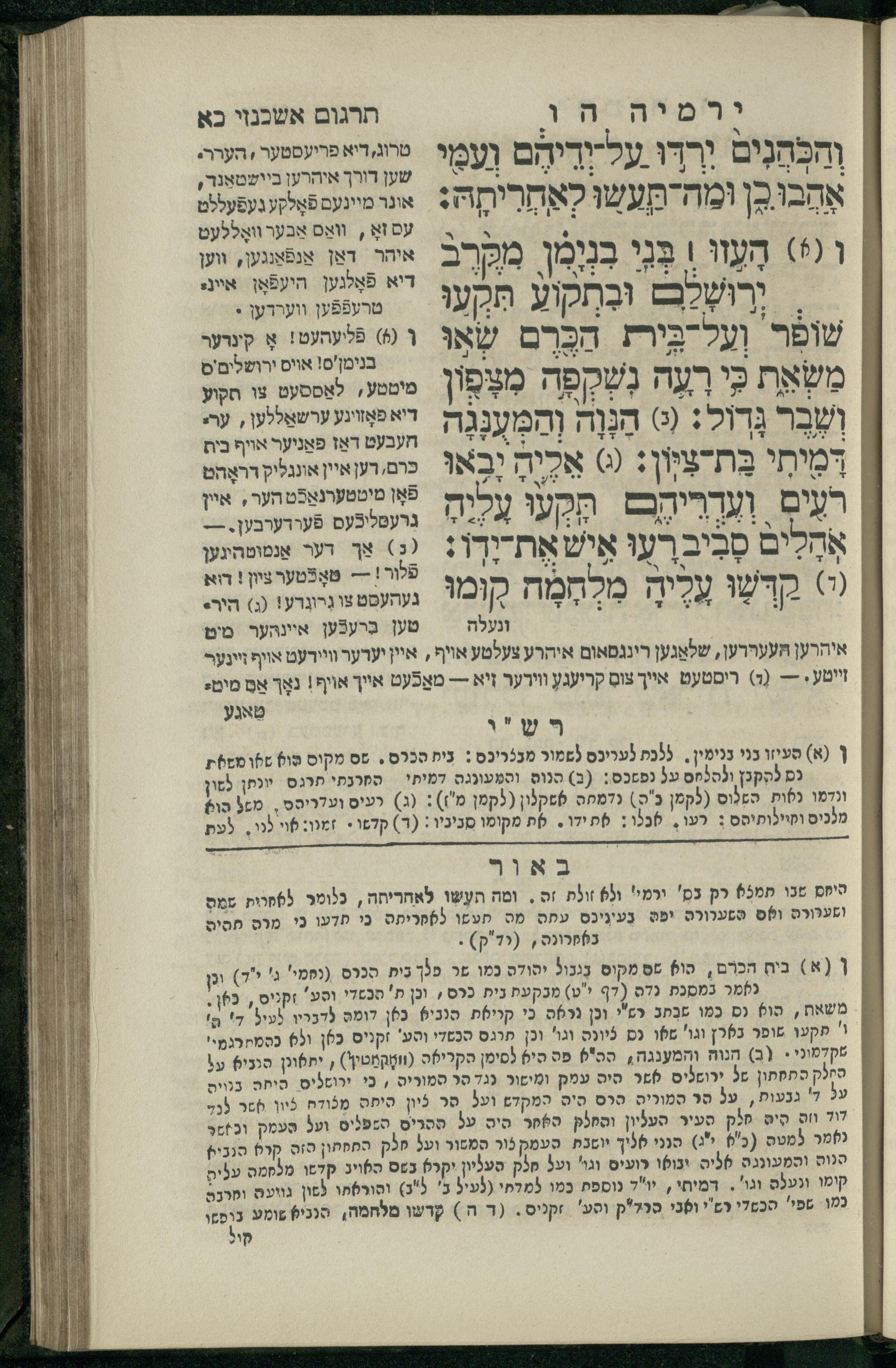 11 (1836) Sefer Yirmeyah / meturgam u-mevoʾar me-ḥadash me-et ha-Rav m.h. Shelomoh ben mo.h. Daṿid Zakhs (a.b.d. di-ḳ.ḳ. Likhṭenshṭadṭ u-gelilot Elenbogen ṿe-Zaʾats be-medinat Behmen) ṿe-nilṿah elaṿ Perush Rashi ṿe-haʿtaḳah u-veʾur kol milot be-laʿaz me-et ha-madpis Mosheh ha-Leṿi Landa11 (1836) ספר ירמיה / מתורגם ומבואר מחדש מאת הרב מ"ה שלמה בן מו"ה דוד זאכס (אב"ד דק"ק ליכטענשטאדט וגלילות עלנבאגען וזאאץ במדינת בעהמען) ונלוה אליו פירוש רש''י והעתקה ובאור כל מלות בלע''ז מאת המדפיס משה הלוי לנדא