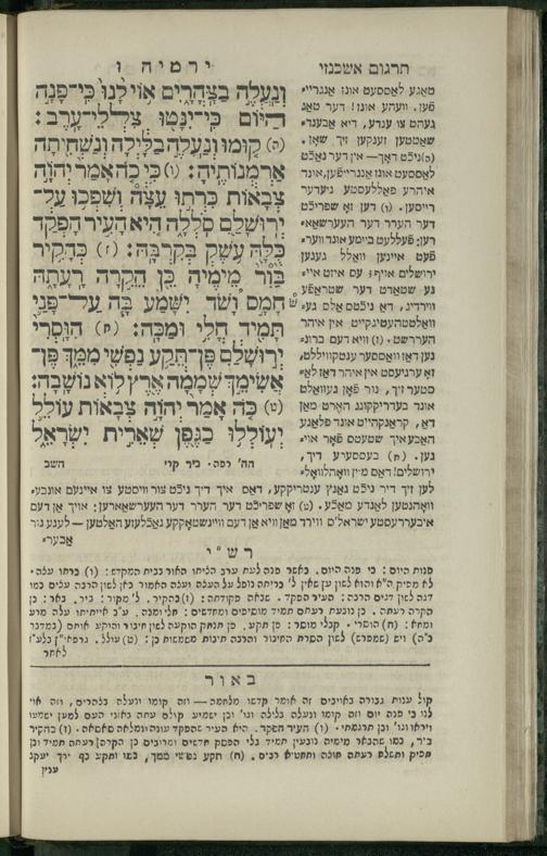 11 (1836) Sefer Yirmeyah / meturgam u-mevoʾar me-ḥadash me-et ha-Rav m.h. Shelomoh ben mo.h. Daṿid Zakhs (a.b.d. di-ḳ.ḳ. Likhṭenshṭadṭ u-gelilot Elenbogen ṿe-Zaʾats be-medinat Behmen) ṿe-nilṿah elaṿ Perush Rashi ṿe-haʿtaḳah u-veʾur kol milot be-laʿaz me-et ha-madpis Mosheh ha-Leṿi Landa11 (1836) ספר ירמיה / מתורגם ומבואר מחדש מאת הרב מ"ה שלמה בן מו"ה דוד זאכס (אב"ד דק"ק ליכטענשטאדט וגלילות עלנבאגען וזאאץ במדינת בעהמען) ונלוה אליו פירוש רש''י והעתקה ובאור כל מלות בלע''ז מאת המדפיס משה הלוי לנדא