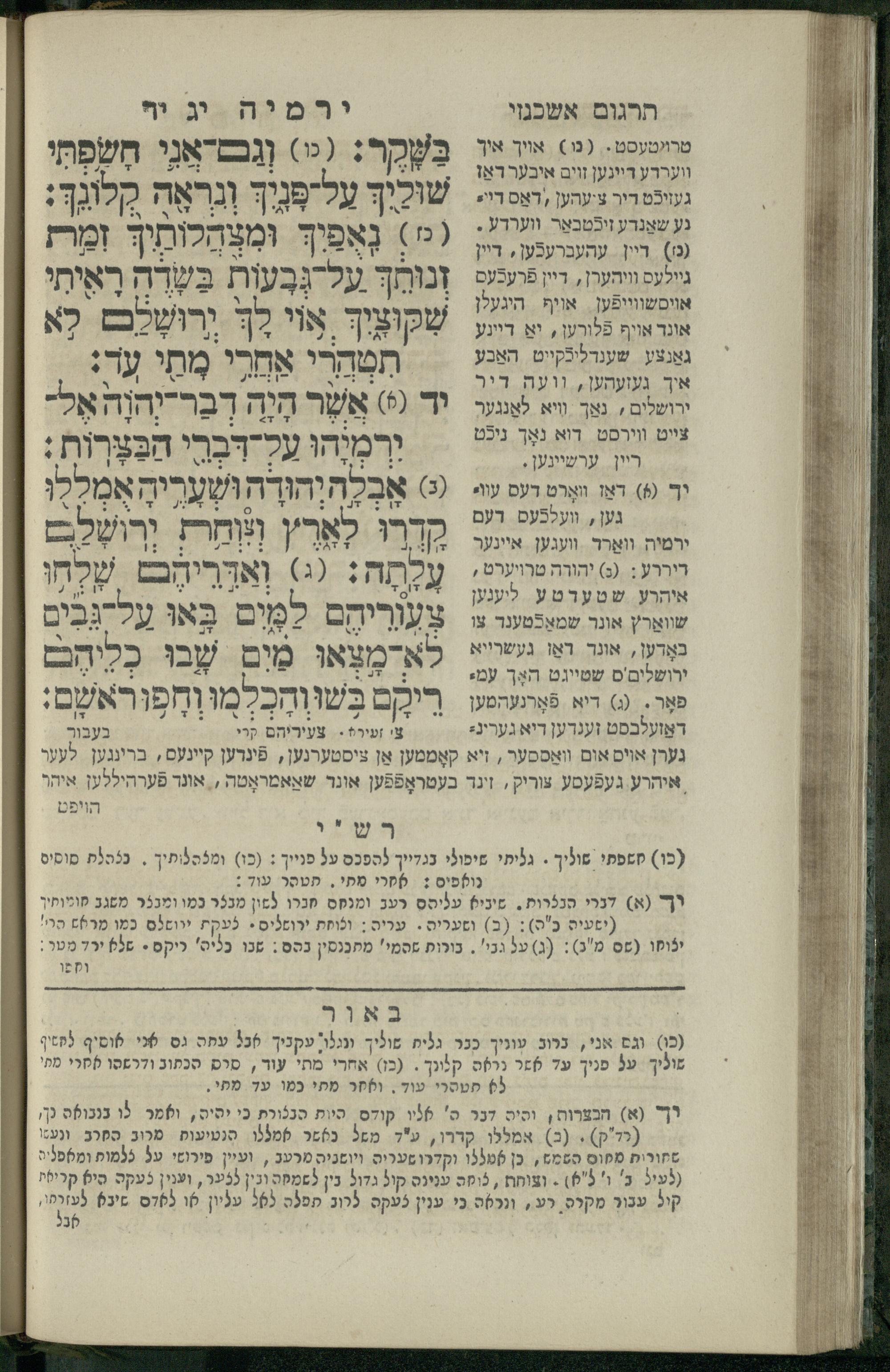 11 (1836) Sefer Yirmeyah / meturgam u-mevoʾar me-ḥadash me-et ha-Rav m.h. Shelomoh ben mo.h. Daṿid Zakhs (a.b.d. di-ḳ.ḳ. Likhṭenshṭadṭ u-gelilot Elenbogen ṿe-Zaʾats be-medinat Behmen) ṿe-nilṿah elaṿ Perush Rashi ṿe-haʿtaḳah u-veʾur kol milot be-laʿaz me-et ha-madpis Mosheh ha-Leṿi Landa11 (1836) ספר ירמיה / מתורגם ומבואר מחדש מאת הרב מ"ה שלמה בן מו"ה דוד זאכס (אב"ד דק"ק ליכטענשטאדט וגלילות עלנבאגען וזאאץ במדינת בעהמען) ונלוה אליו פירוש רש''י והעתקה ובאור כל מלות בלע''ז מאת המדפיס משה הלוי לנדא