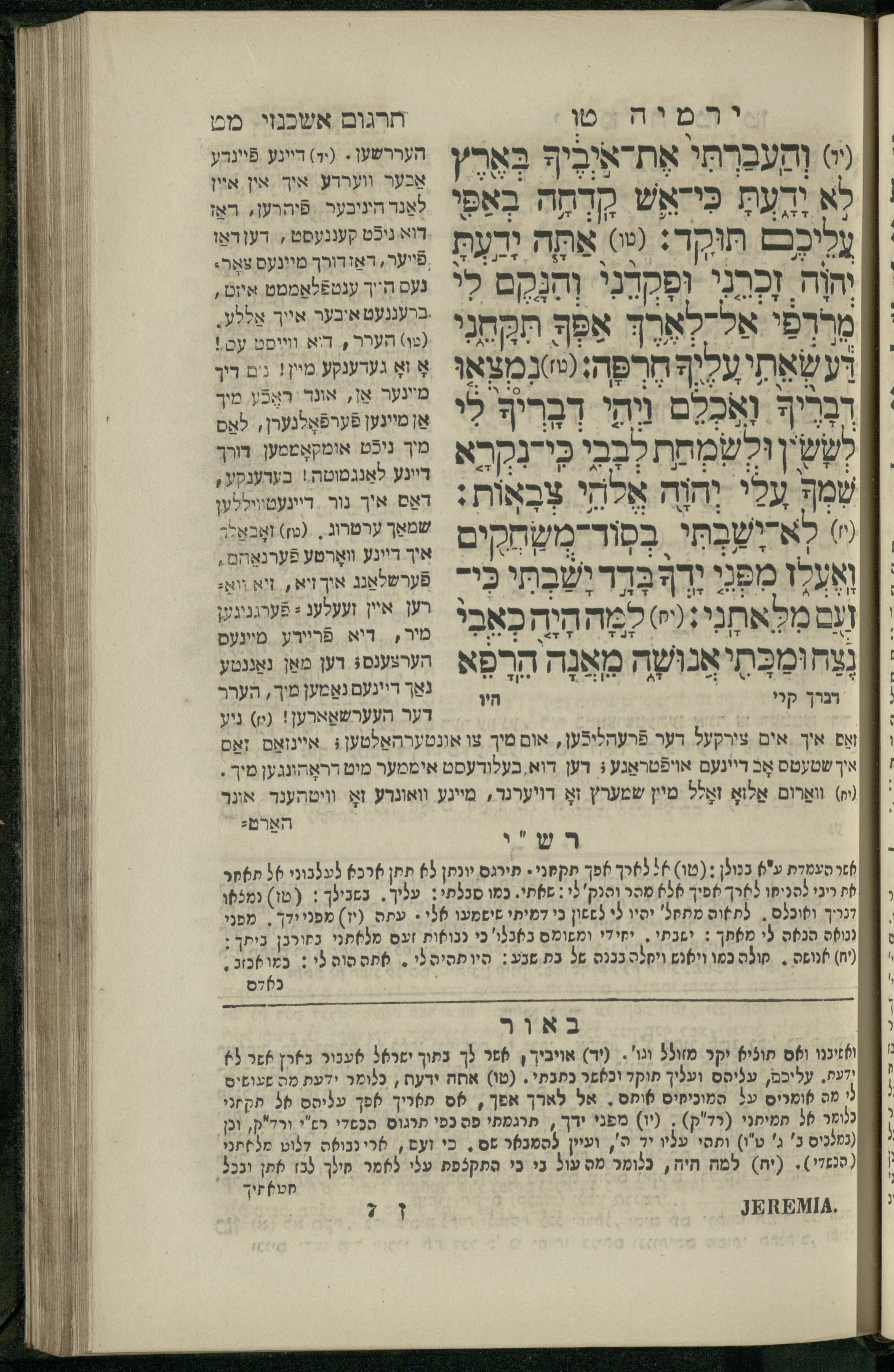 11 (1836) Sefer Yirmeyah / meturgam u-mevoʾar me-ḥadash me-et ha-Rav m.h. Shelomoh ben mo.h. Daṿid Zakhs (a.b.d. di-ḳ.ḳ. Likhṭenshṭadṭ u-gelilot Elenbogen ṿe-Zaʾats be-medinat Behmen) ṿe-nilṿah elaṿ Perush Rashi ṿe-haʿtaḳah u-veʾur kol milot be-laʿaz me-et ha-madpis Mosheh ha-Leṿi Landa11 (1836) ספר ירמיה / מתורגם ומבואר מחדש מאת הרב מ"ה שלמה בן מו"ה דוד זאכס (אב"ד דק"ק ליכטענשטאדט וגלילות עלנבאגען וזאאץ במדינת בעהמען) ונלוה אליו פירוש רש''י והעתקה ובאור כל מלות בלע''ז מאת המדפיס משה הלוי לנדא